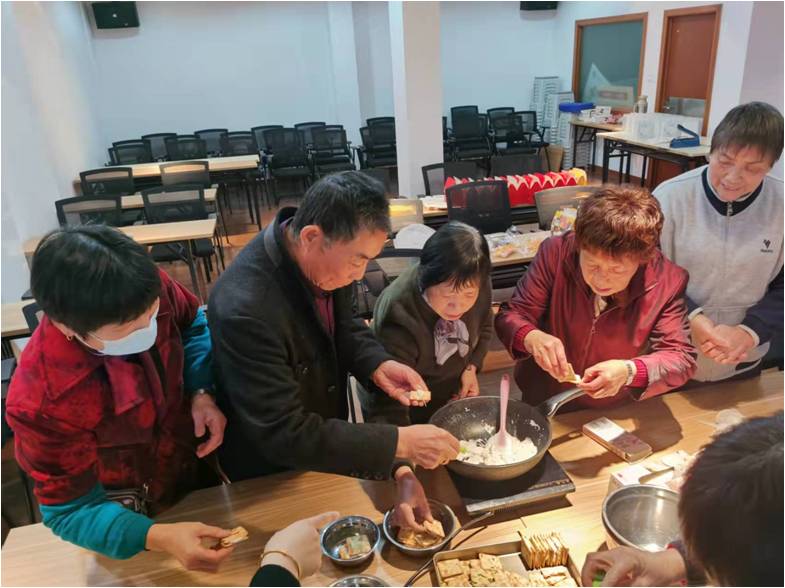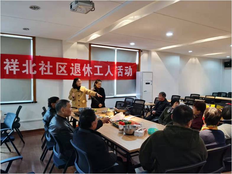 11月29日上午,祥北社区邀请部分优秀志愿者居民参与做蛋糕、牛扎饼等手工体验活动。社区邀请党员志愿者邵老师为大家培训。大家分工齐上手,热闹过节。