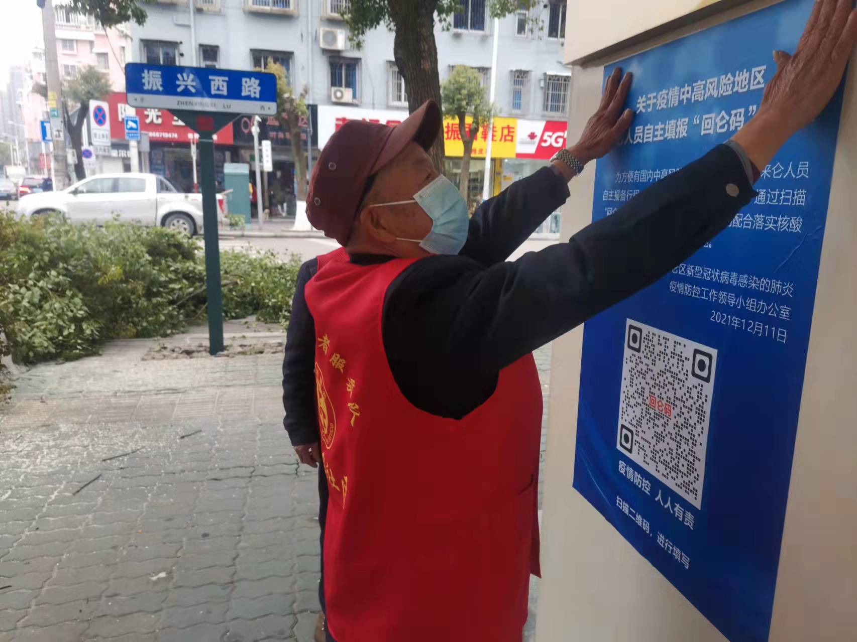 随着浙江多地疫情消息的传出,防疫工作的开展压力也骤然增加,回轮码的推出极大的方便了中高风险区域来人的信息采集。在拿到回轮码通告的第一时间,红联社区党群服务中心副主任葛维君号召志愿者们在社区各个区域进行张贴并宣传,以确保所有居民都能扫码登记。