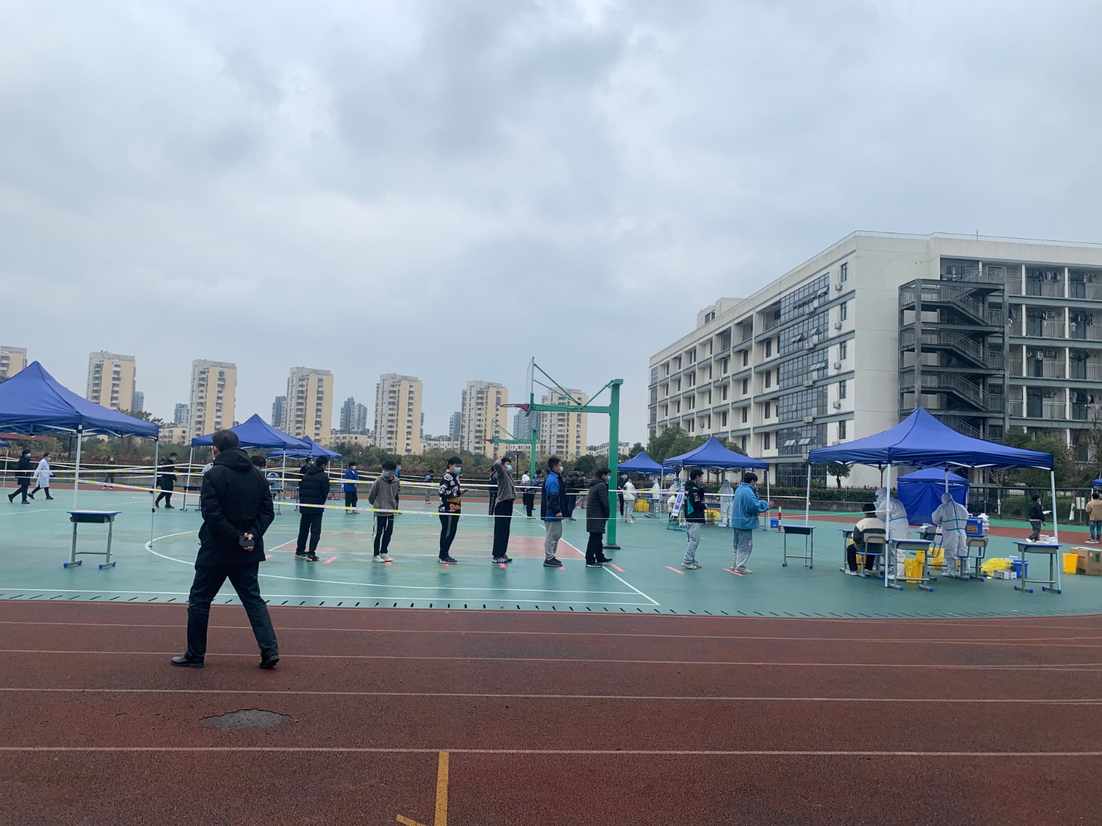 这时,突然接到街道通知,兰庭辖区的某学校内有学生为镇海确诊患者密接,需马上进行管控,因校内学生多、涉及面广,工作人员极度缺乏,需要社区网格长第一时间赶到学校协助开展疫情管控。