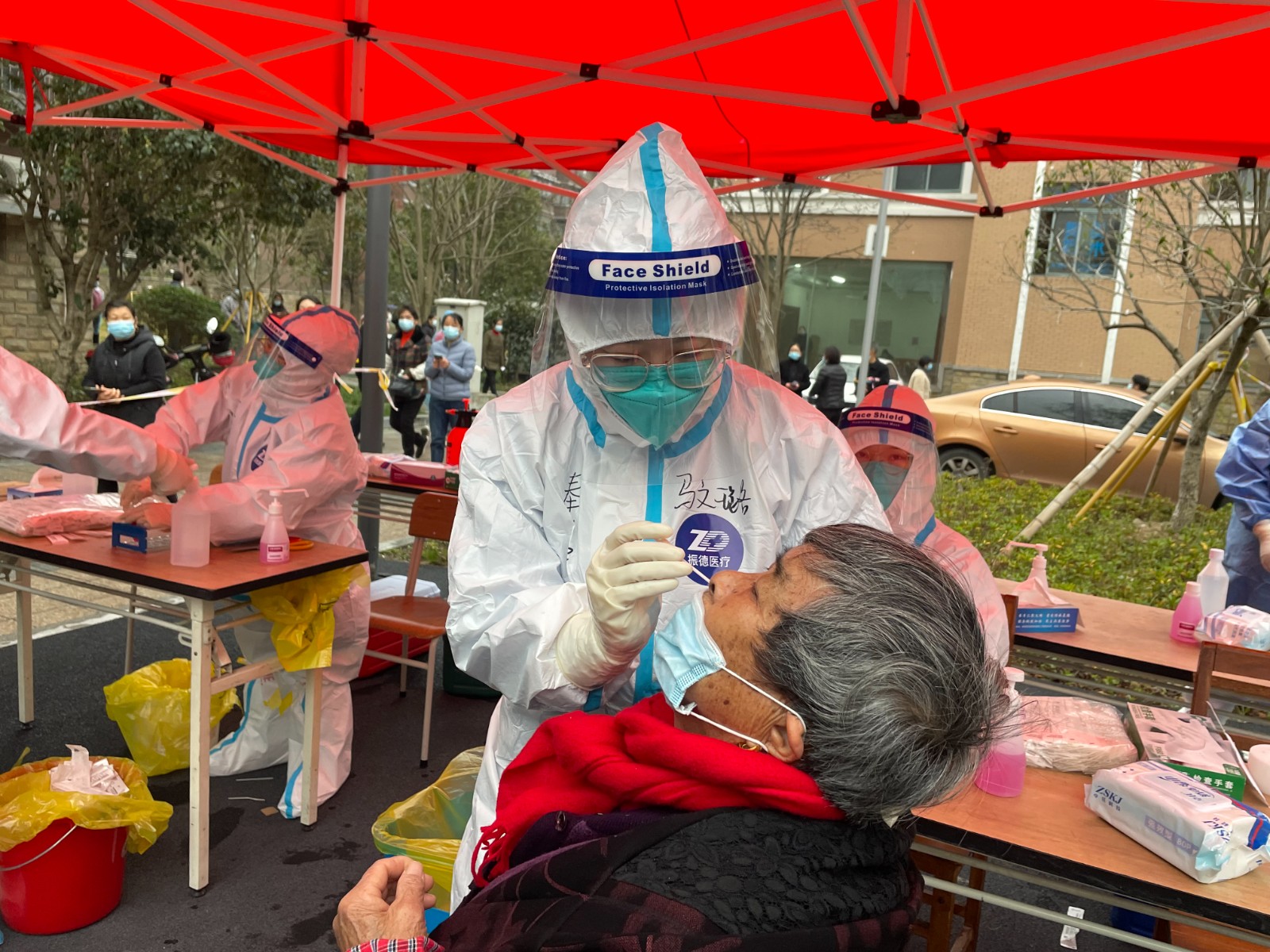 南一社区连夜布置核酸检测点位,搭建帐篷,设置警戒线,对即将进行的全区大规模核酸检测部署统筹,确保第一轮全员核酸有序完成。第二日早上7时许,社区全体社工、医务人员、志愿者等已在各自的岗位上整装待命,在工作人员的指引下,各个点位核酸检测有序进行。