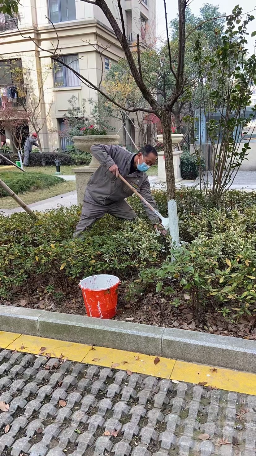 “天气越来越冷了,必须得给小区里的树木刷上白漆,不仅看起来美观,还能杀菌防虫,减少病害发生。”物业郑经理说,“作为物业公司我们要对小区的业主负责,小区里的绿植关系到整个小区的美观,影响着业主们居住的舒适感和归属感。每年的寒冬时分,小区里的树木都会有或多或少的损伤,不仅破坏了小区的美感也增加了小区的维护费用,这次刷上白漆,也是希望所有的树木能够安稳的度过这次寒冬。”