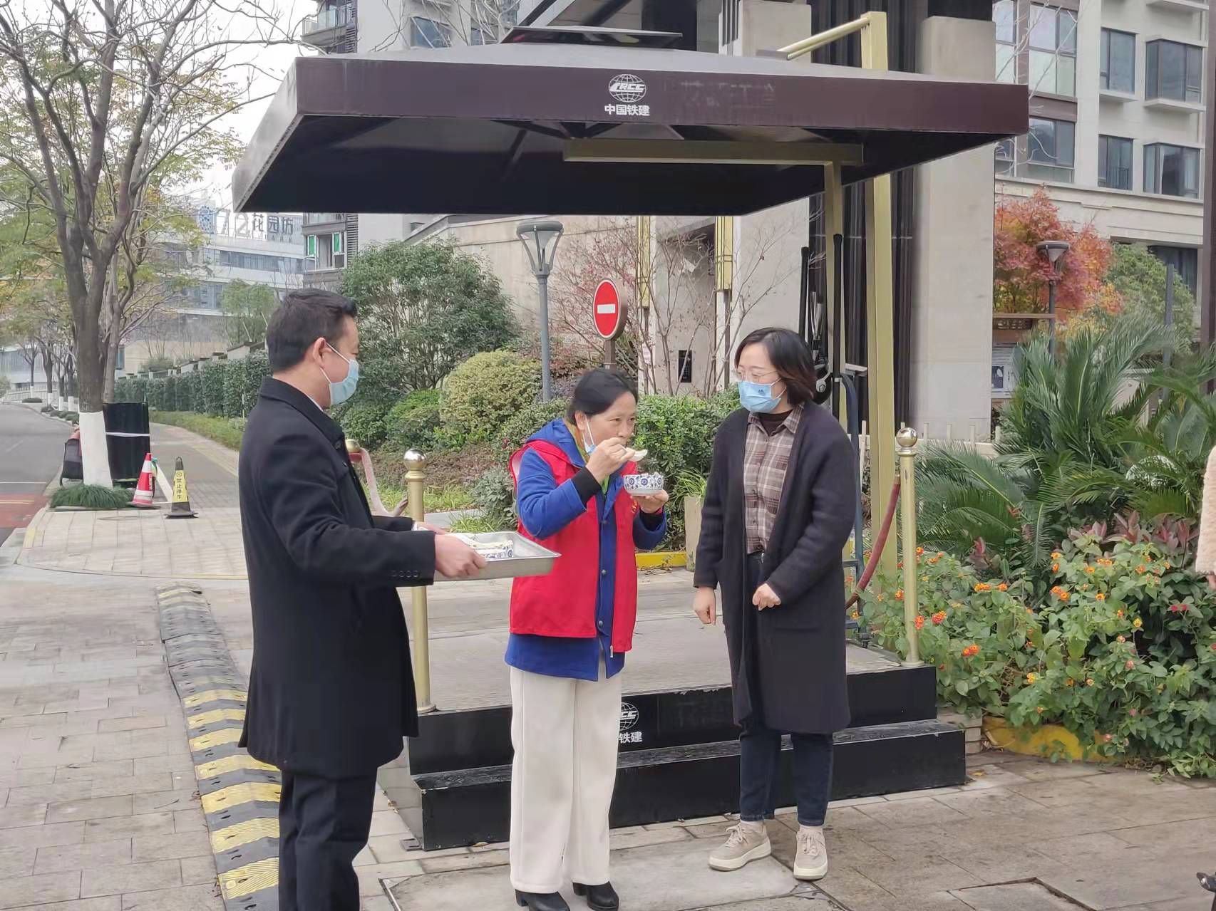 随后,志愿者们与社区工作人员们一起将包好的饺子和汤圆送到了忙碌的环卫工人、坚守在防疫一线的志愿者、保安师傅和随迁老人的手中,送上了节日的祝福,并感谢他们平日里为社区所作出的贡献。