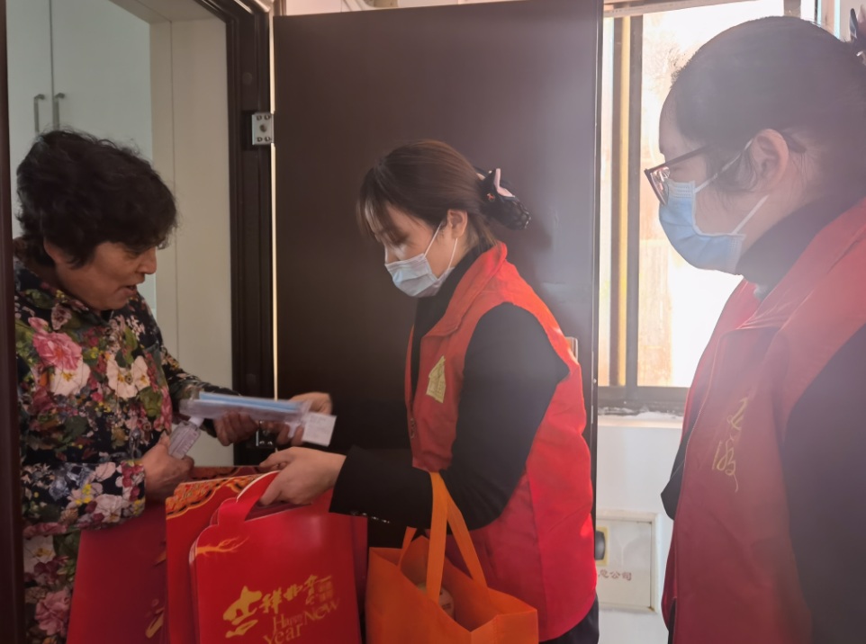 时值辞旧迎新之际,本次入户宣传邀请辖区共建单位宁波银行,为居民送上“福袋”,连同《法治江北建设倡议书》一起发放给辖区居民,同时还为高龄老人送上防疫物资如口罩、酒精等,告诉老人们疫情防控仍不能松懈。