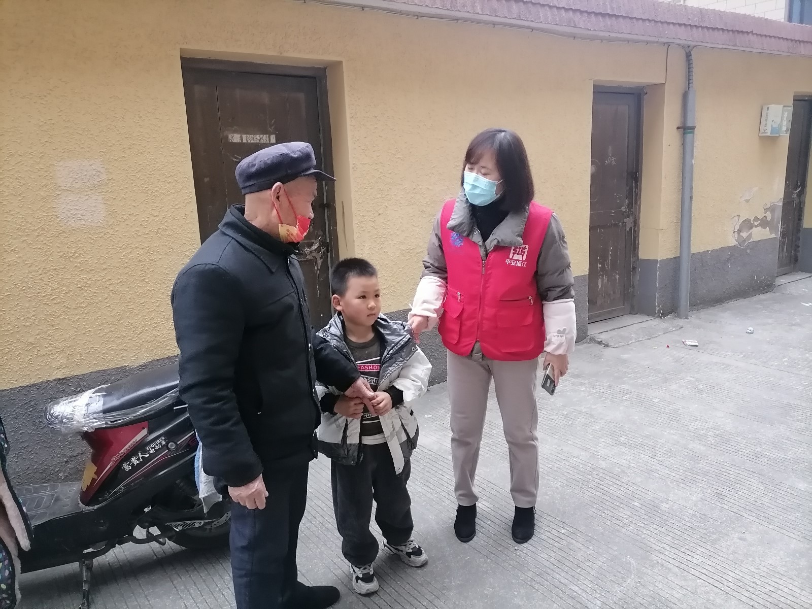 “外公!外公!开门啊,你快开开门啊!哇哇哇哇......”峰城社区党群服务中心工作人员在陪同医务人员上门对居家隔离户进行核酸采样时,依稀听到小孩的哭喊声,通过辨别,发现哭声是从安泰路20号楼里传出来,“海娜姐,好像20号楼那边有个小朋友在哭,我这边走不开,你能不能去看看是什么情况。”社区网格员周海娜接到同事电话,立刻放下手头工作前往楼层查看情况。