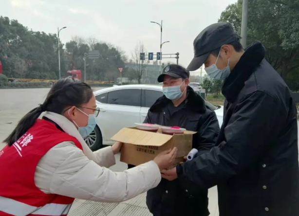 物流工业社区组织社工党员志愿者分批前往各个企业为疫情期间的志愿者们亲自送上腊八粥,祝福他们节日快乐。在送腊八粥的同时,社区工作人员还附上了感谢条。“疫路有你,感恩疫路上平凡的您。”