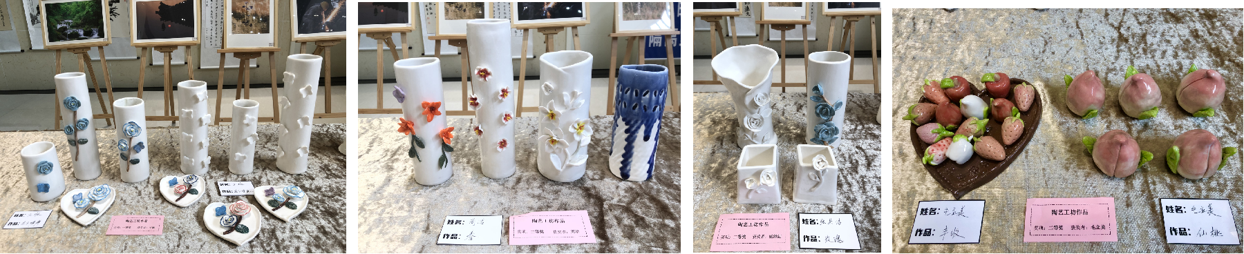 喜迎新春静态系列作品展示活动,得到学院各个部门的通力合作。前期的作品征集、评选、装裱、展出,近两个月时间的精心准备和努力工作,终于在2022年新年的第一周成功亮相,直至学年结束。此次展出共收到来自10个班级168名学员精心创作的作品,其中书法19件、国画34件、摄影42件、陶艺26件、烘焙6件、开心厨房6件、钩针编织11件。有遒劲刚健的书法,浓淡相宜的山水花鸟画,工整细致的工笔画,也有题材多样的摄影作品,清新淡雅的陶艺作品,美观实用的钩针编织作品,还有开心厨房、西式烘焙当天现场比赛,新鲜出炉、香气四溢的烘焙、面点成品。