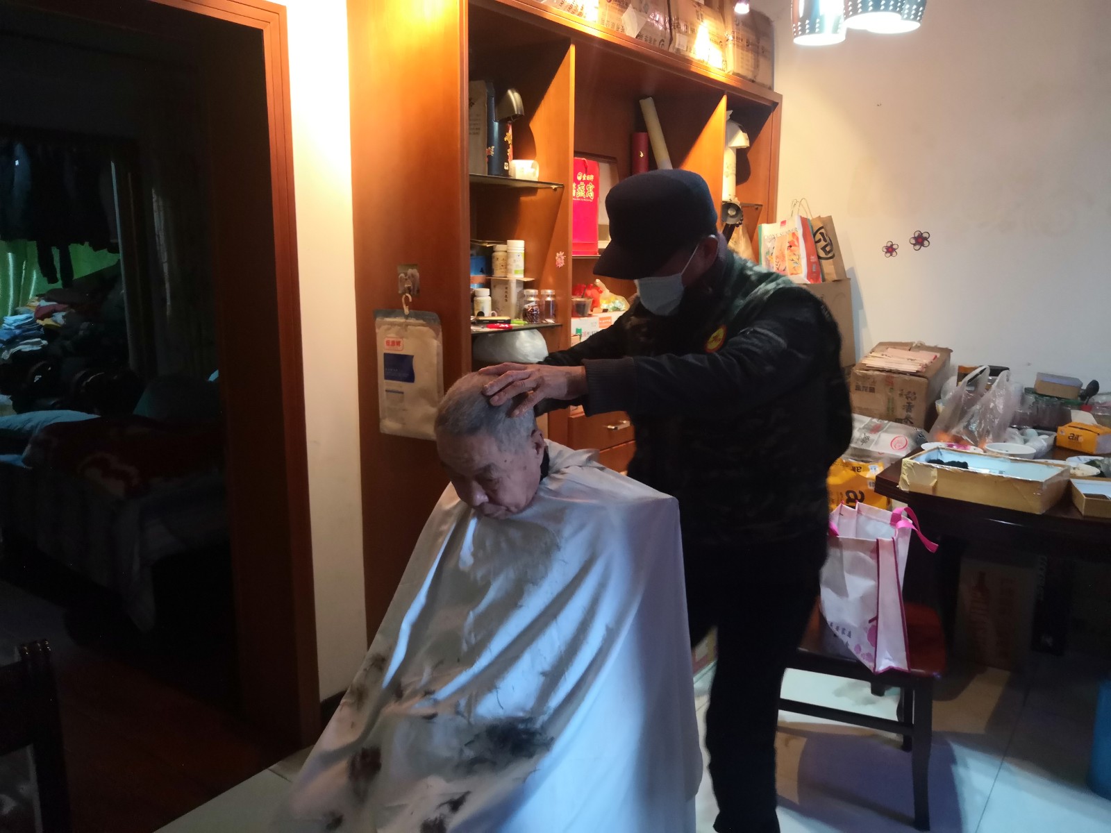 “小王,这是我们社区的爱心理发组志愿者,前几天不是说安排上门给老爷子理发嘛,今天我就特意请他们过来了。”上午9点半左右,红联社区党群服务中心副主任葛维君带领着党员志愿者徐忠华和他的理发组成员们来到了渡口新村王先生家里。“哎呀,葛大姐,前两天才说起,你们就安排上门了啊,真是费心了,感谢感谢。”原来前几天葛维君上门看望困难老人的时候看到82岁的王伯伯头发长了,立即联系了志愿者为老年人提供上门理发服务。“之前给老爷子理发都是自己找朋友帮忙开车带着去理发店的,老人家腿脚也不太方便,不仅老人折腾而且还麻烦朋友,这下好了,今后社区能每个月安排一次上门理发服务,可帮了我大忙了。”王先生由衷地说。