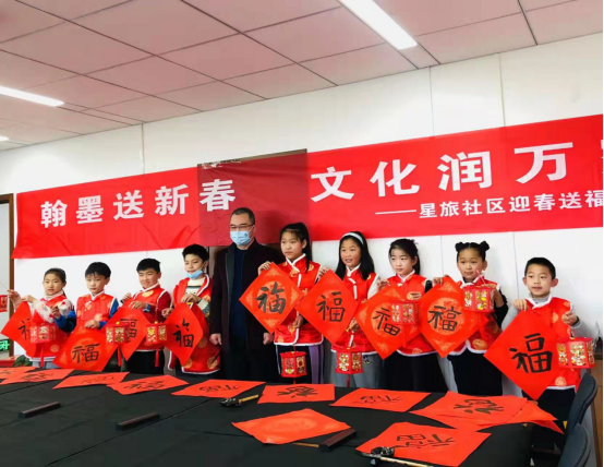 前江街道星旅社区:“翰墨传少年,童心贺新春”送春联活动
