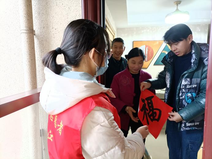 一副春联浓缩新年心愿贴春联是我们中华民族传统节日春节的习俗之一,前期活动中,星旅社区邀请马见存老师带领小小志愿者书写的春联在本次活动中将由学生志愿者送到需要的家庭中。