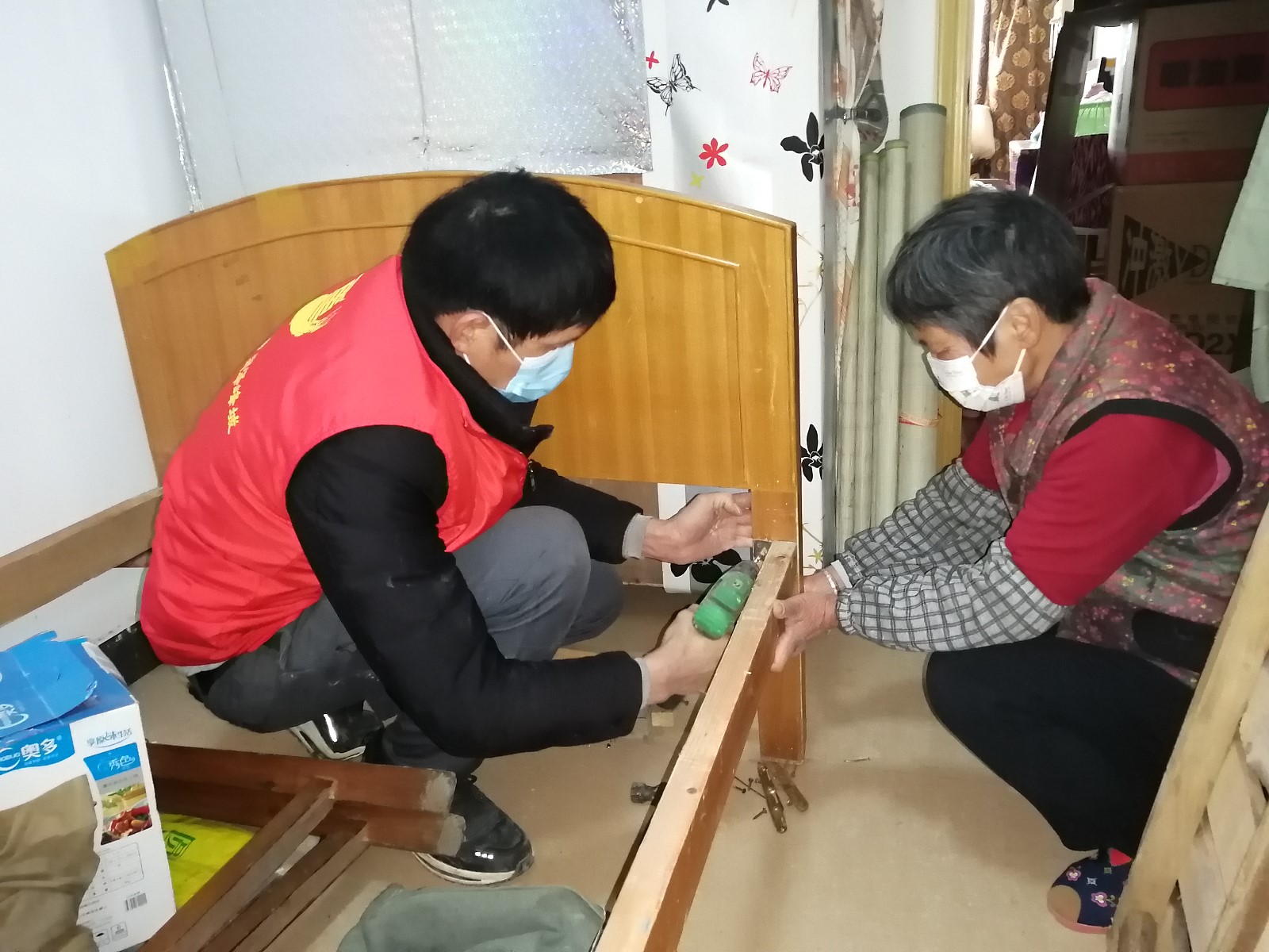 “横档上一个铁零件断掉后生怕床塌掉,我老大婆夜里厢翻身都不敢太用力,斤斤急飒,多亏了小胡师傅嘞!”残疾人家庭贺大娘看着在家里忙忙碌碌的志愿者,连声道谢。临走前,胡学松还帮贺大娘家正门贴上了一副新春对联,给老人家带去了过年的“喜气儿”。