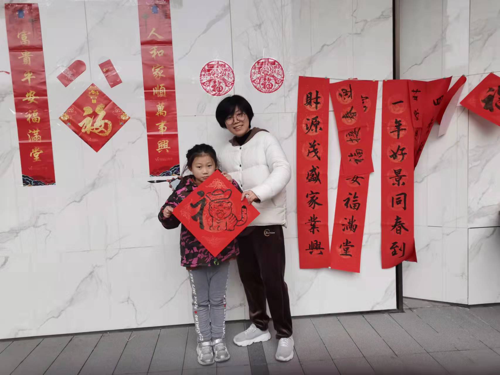 活动现场,墨香四溢,处处洋溢着温暖、祥和的氛围,不少居民带着孩子一起来参加,五老带着孩子有序的站在写字台边上,在空着的红纸上写出了自己的“福”,画出了年味十足的“虎福”。随后物业将写好的一幅幅年味十足的春联有序送到居民手中,红红的春联映着大家的笑脸。