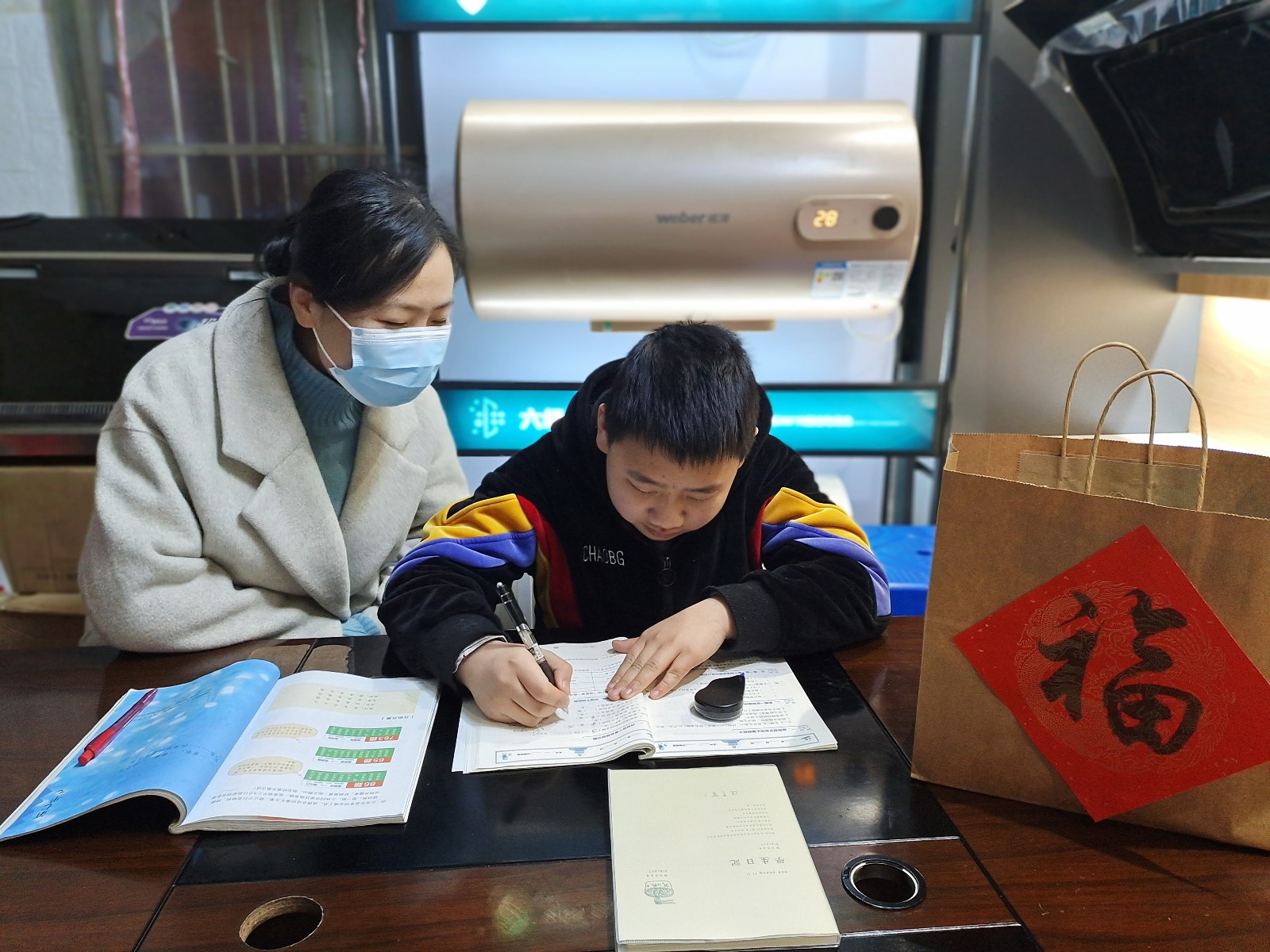 在走访的过程中,社区工作人员热切关心孩子们的学习和成长状况,与他们开展了暖心交流。“这道题目可以按照一元两次方程的思路来解答......”看到正埋头思索的小陈,工作人员便坐下来,耐心地为他讲解。