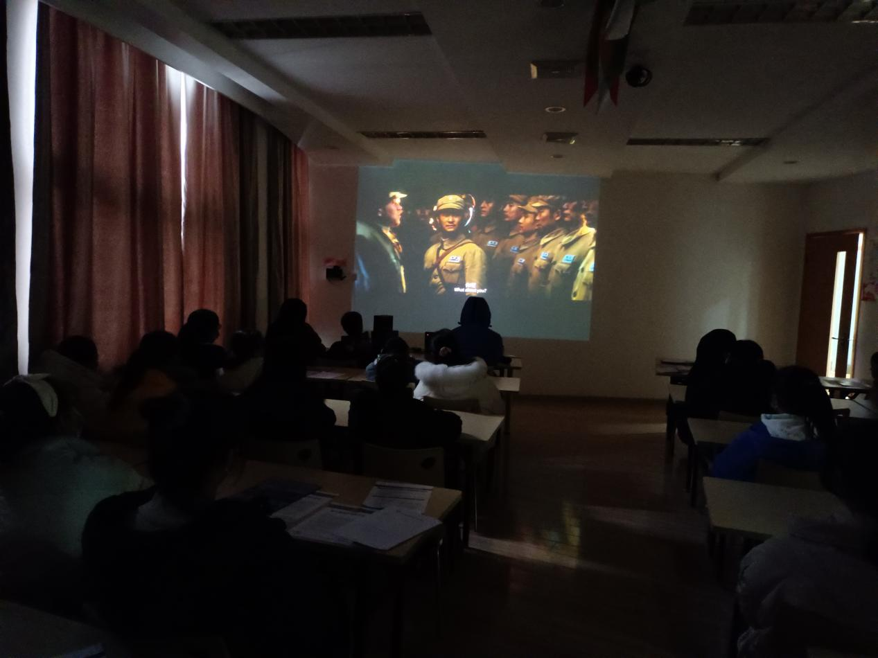 的光辉历史以及一系列的英勇战绩。接着就播放了时下热播的长津湖这部电影给青少年们看,长达3个小时的电影,孩子们鸦雀无声看得相当投入,每到感人的片段出现时候,有的孩子甚至在轻轻抽泣,可见有多么的感同身受。