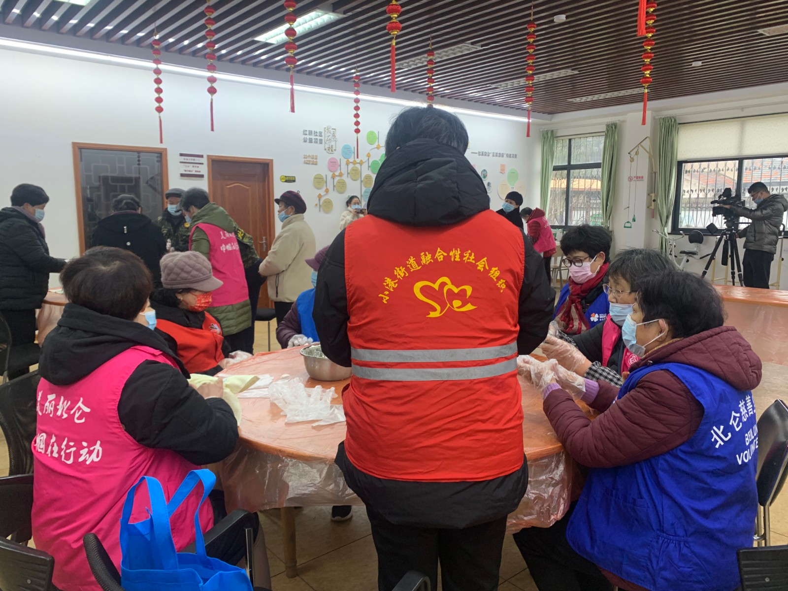 在社区活动室里,老人们相聚而坐,揉面、拌陷、搓汤圆一群人忙的不亦乐乎,一颗颗圆润的汤圆很快在阿姨们的手中就搓揉完成,整齐地摆放在桌上。“小芳阿姨,你这在包的不是一般的汤圆吧,是不有新的样式了?”只见在桌子一角,吴小芳阿姨正在认真地摆弄着汤圆粉团。“我正在用粉团包冰墩墩汤圆呢,这不是正在举办冬奥会嘛,我要做一个别样的冰墩墩团员,为冬奥健儿们加油。”不一会儿,一个憨态可掬、可爱喜人的冰墩墩汤圆就浮现在了大家的眼前。“哇,太可爱了,小芳阿姨你的手是真的巧。”包汤圆、煮汤圆、品汤圆,一片欢声笑语,大家尽情享受着这美好的时光。