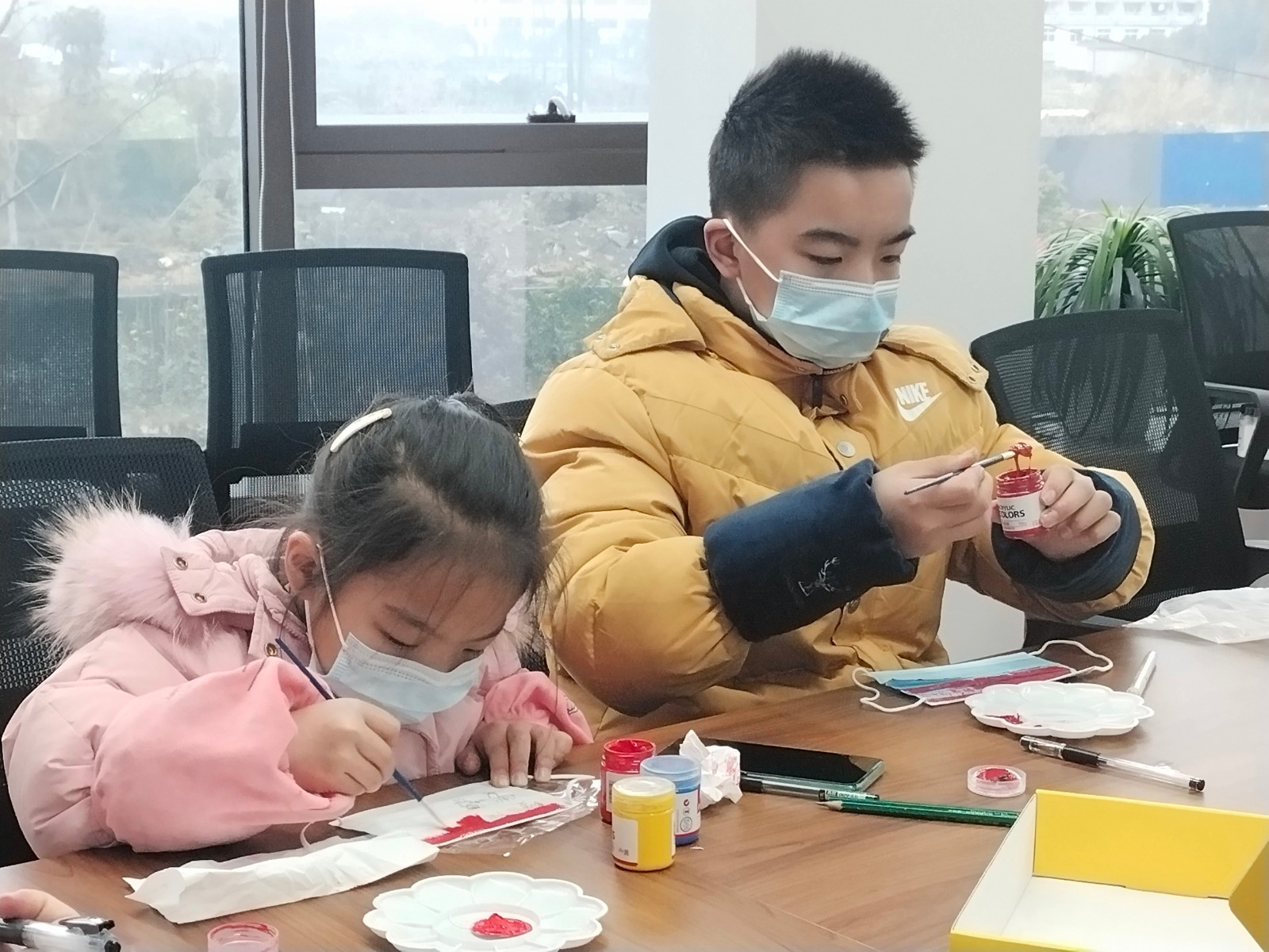下午,社区网格长讲解新冠病毒特征、传染性、危害性等,以及国内的疫情走向、防控办法等,居民和学生根据了解设计出关于疫情主题的口罩。参与者用丙烯颜料在医用口罩上,绘画出不同主题的图案。