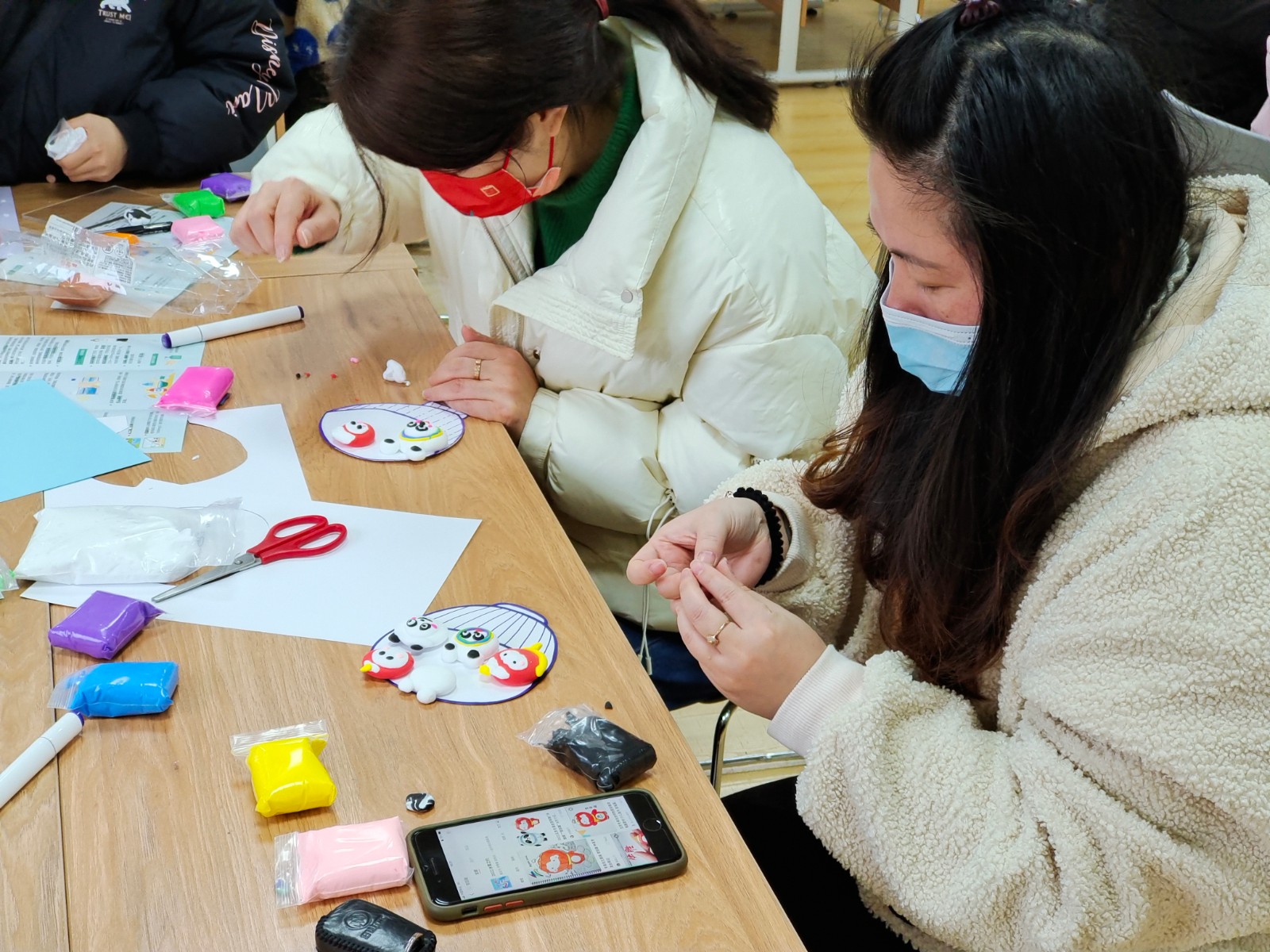 211日上午,新晨社区党群服务中心举办了以“童心迎冬奥,欢乐闹元宵”为主题的亲子活动。10余组亲子家庭在老师的带领下,通过捏、搓、揉、掀,将一块块超轻黏土变成了一个个形态各异的汤圆,憨态可掬的“冰墩墩”、栩栩如生的小蚂蚁等相聚一家,组成一碗碗各具特色的汤圆。