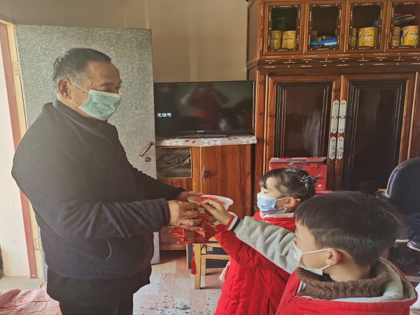 “爷爷,明天就是元宵节,祝您元宵节快乐!我们亲手制作了花灯,送给您,还有元宵,可好吃了!”家住林大老年房的贺大爷是计生特殊家庭,逢年过节都是一个人度过,对于小朋友们的到访很是高兴,忙着招呼他们进屋。“以前过年过节都是一个人,没啥节日的气氛,今年小朋友们不仅给我送来了喜庆的花灯,还有热乎乎的汤圆,让我感觉很幸福。”看着喜庆的红包花灯,吃着软糯香甜的汤圆,贺大爷不禁说道。