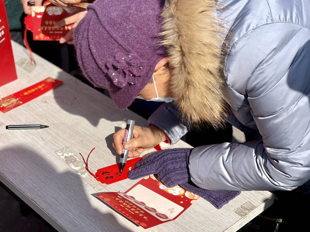 “新的一年,希望全家人健康平安。”在清风渡“祈愿添福”点,居民胡阿姨在祈福卡上认真地写下自己的新年愿望。“今天天气也特别好,来步道散散步,玩玩游戏。”胡阿姨笑着说。