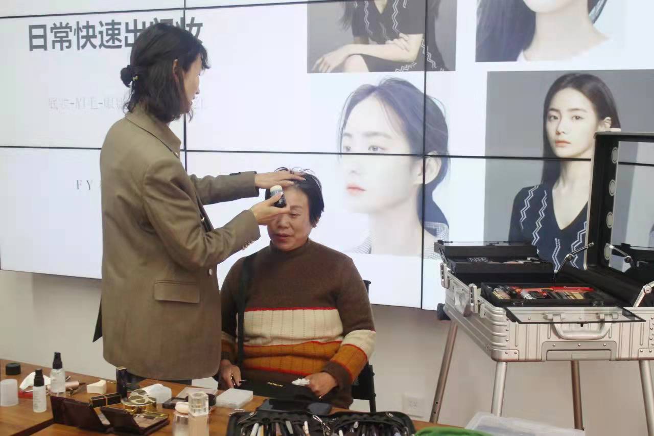 活动开始前老师和女性居民一起做美容操,先讲解化妆的技巧和皮肤的分类,然后老师询问:“谁愿意做志愿者,让老师画一下妆”各位女性朋友积极举手,不一会儿在老师的边讲解边化妆的过程中,一个崭新的妆容出现,惹得大家纷纷点赞和跃跃欲试,最后志愿者老师精湛的化妆技巧,让大家受益匪浅。