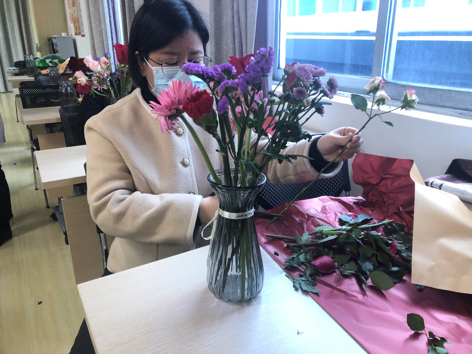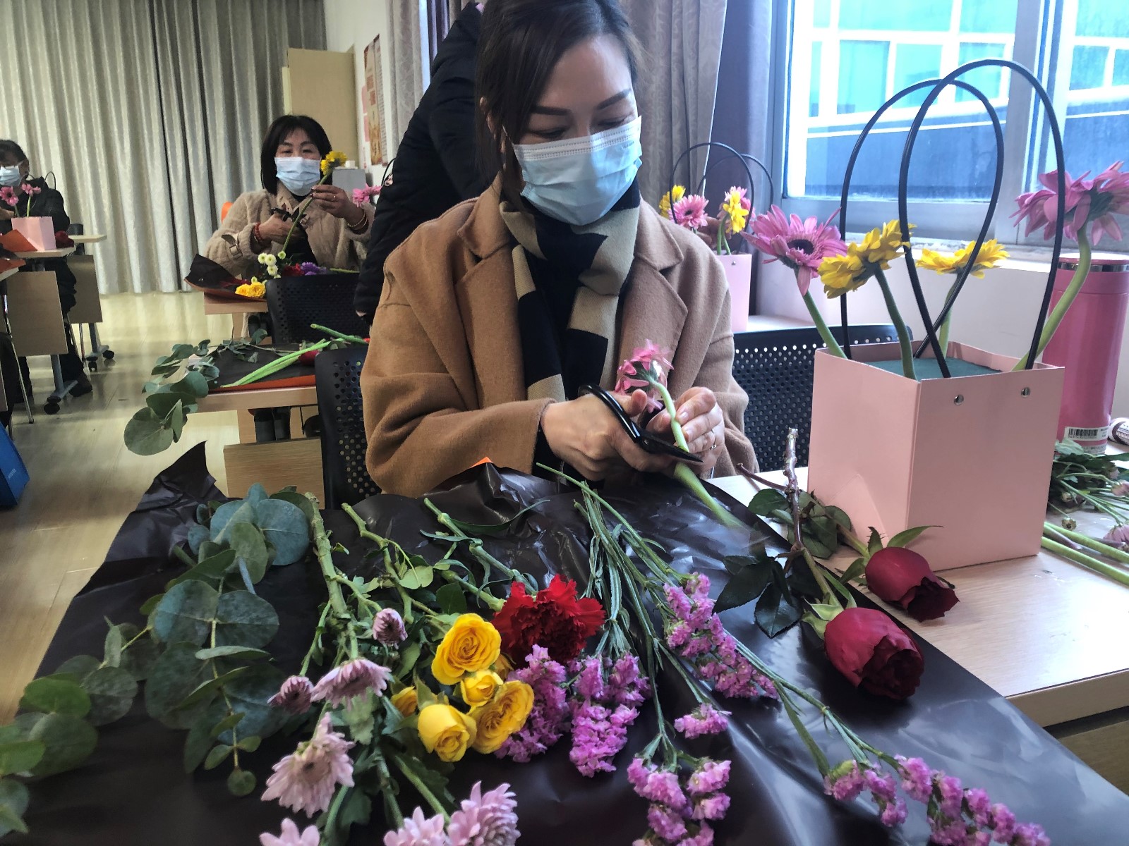 活动当天,为配合疫情防控工作,分为上、下两场开展。活动室内,大家热情高涨,从剪花到插花,一起体验插花的艺术和创作的乐趣。妇女同胞们充分发挥想象,用巧手将花草通过修剪、整枝、弯曲成各种造型。经过一个多小时的加工创作,一捧捧新颖别致的插花作品“新鲜出炉”。活动结束后,大家拿着自己亲手创作的鲜花作品,纷纷相约拍照留念,每个人都感受到了活动带来的温馨和快乐。