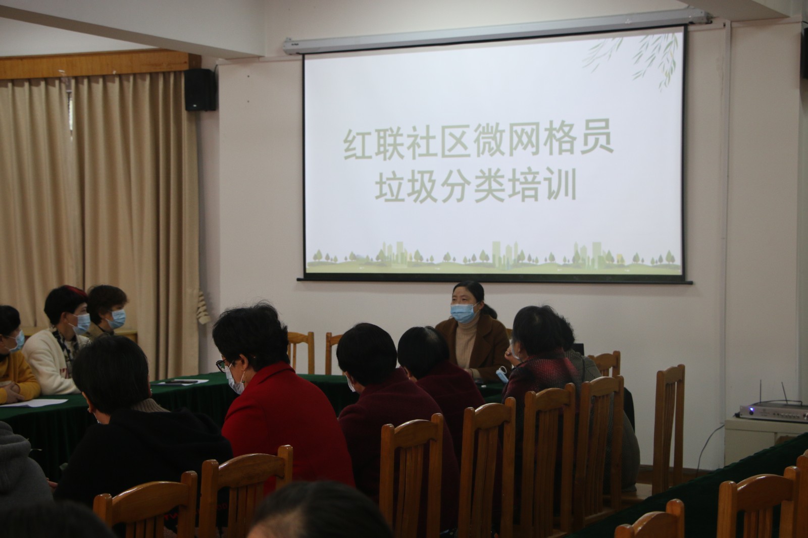 33上午红联社区在社区二楼会议室为微网格员们进行垃圾分类的知识培训,将垃圾分类工作落实到网格工作中。