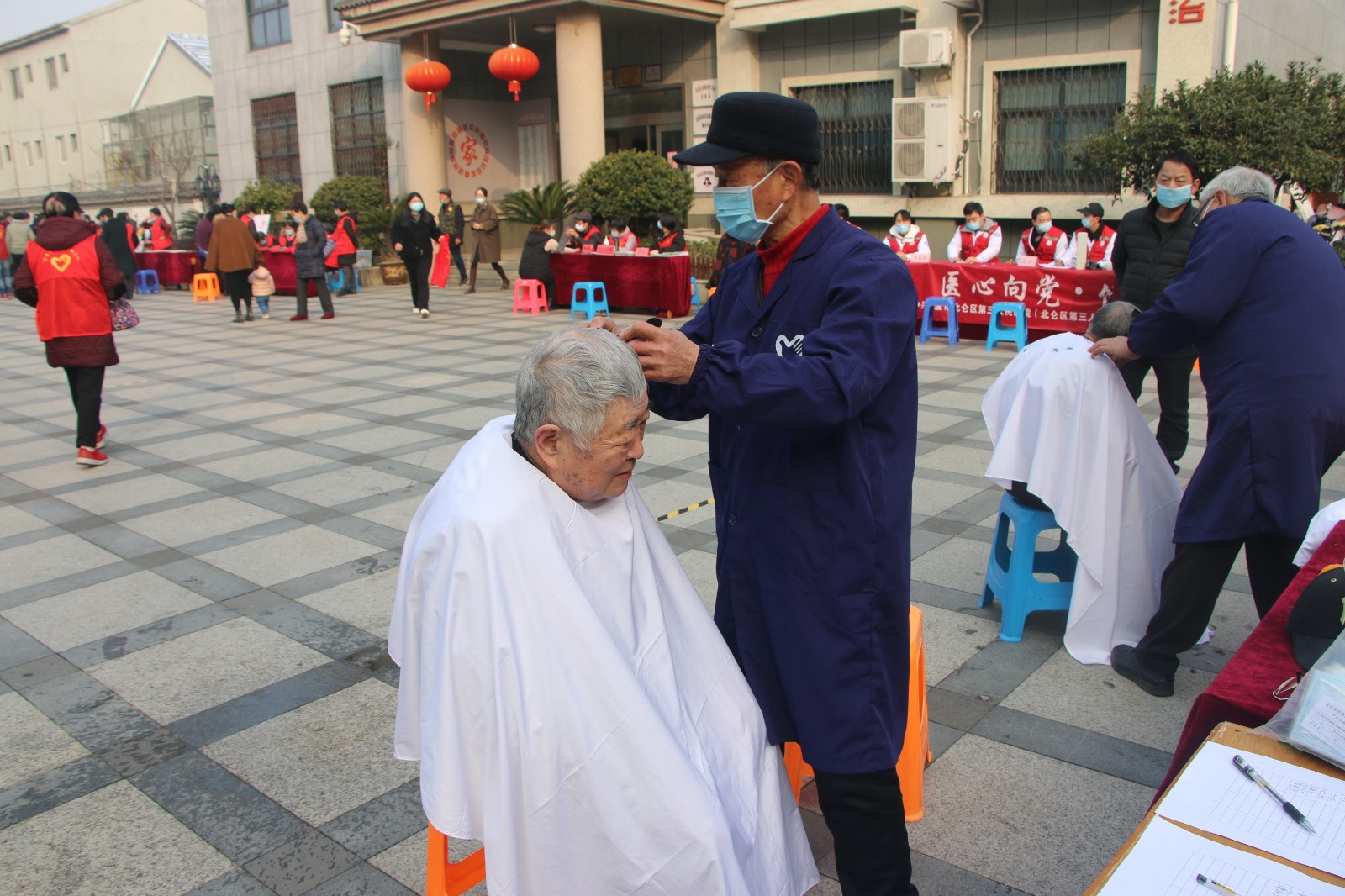 锋刃磨刀队、香香爱心理发组、相约健康吧……此时的各大社会组织摊位前,已经有居民排起了长队。“大家不要着急哦,一个个来就好,我会给所有人都量血压的。”“相约健康吧”的负责人“银辉”党员吴成伟看着摊位前的人群,笑呵呵地维持着秩序。作为一名老党员,吴成伟一直致力于为居民服务事业,每次爱心集市他都会为社区的居民免费测量血压,并且为大家普及高血压的危害和防护措施,受到了居民们的一致好评。同样的,在“香香爱心理发组”的摊位上,老党员徐忠华和周勤龙也已经开始为老年人理起了发,边上还坐着几位等候的居民。“我们爱心理发组每个月都有免费上门为辖区高龄老人爱心理发的服务,社区有助老服务活动的时候我们也会参加,老人们上了年纪外出也不方便,刚好我们也会点理发的手艺,就想着在家门口帮老人们理理发,为老人做点事。”身为老党员的徐忠华,带领着爱心理发组的成员始终奔波在为老人服务的道路上。