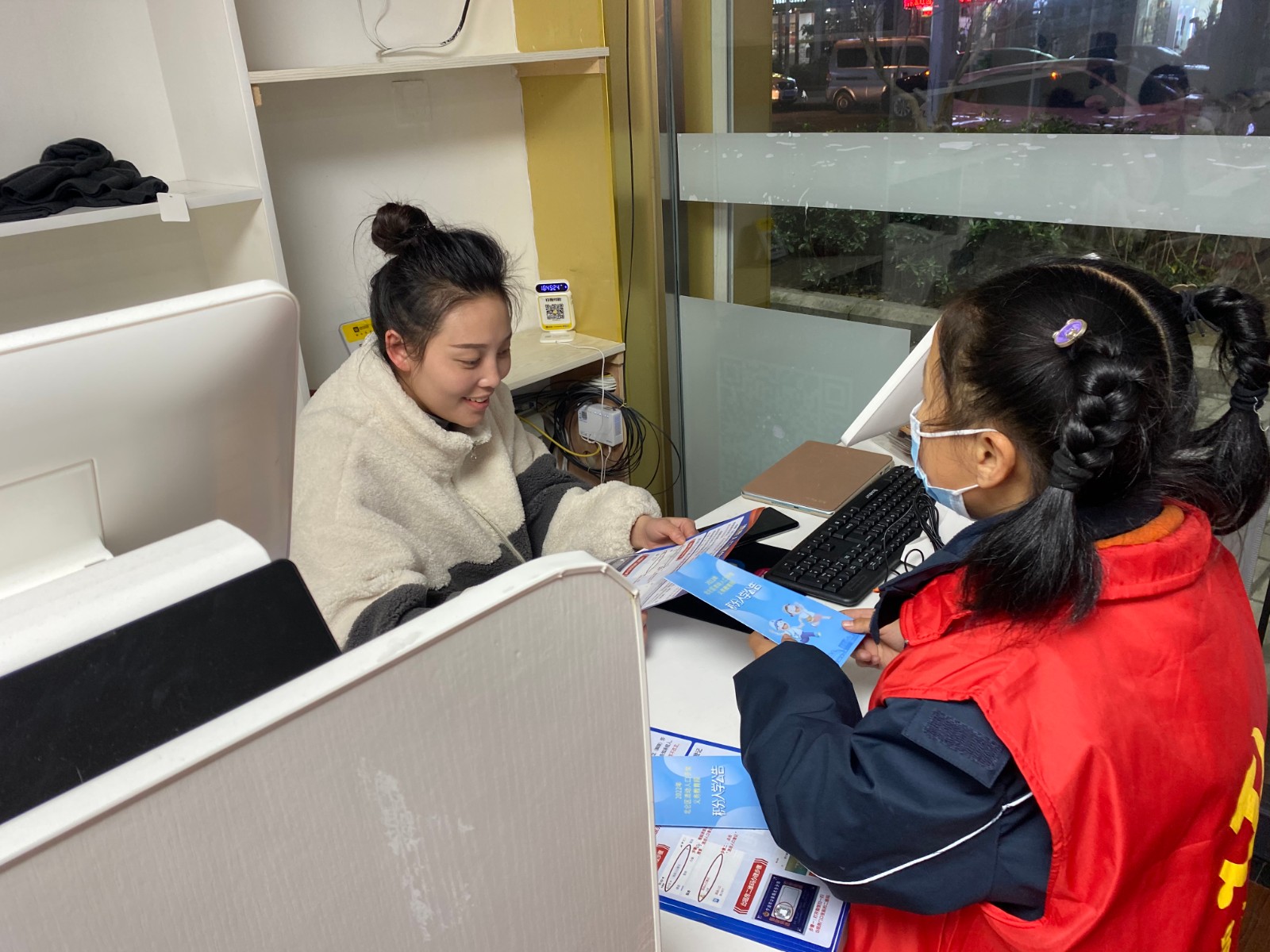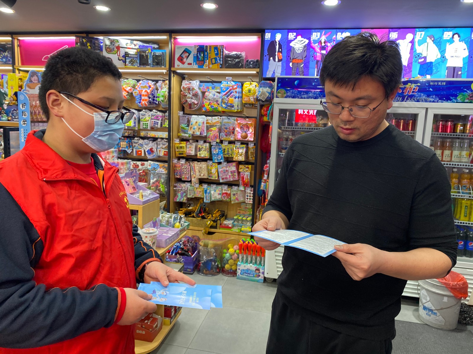 青墩社区的工作人员组织辖区内党员志愿者和青少年志愿者,沿街走访各个商铺,并宣传人口大排查相关信息。