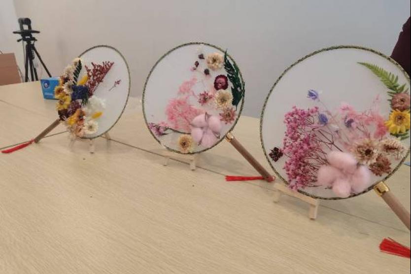 在三八妇女节来临之际,钟包村为丰富我村广大女性的文化生活,让妇女感受到节日的欢乐氛围。我村展开“巾帼巧手生花 共富别样芳华 ”活动,参加的村民大多都是零基础,活动开始认真听完老师的讲解,刚开始大家面对各种颜色的干花,都不知所措,在拆拆黏黏,移来移,最后按照现场老师的宝贵意见,纷纷将一扇纯白的团扇粘贴成唯美的花景。