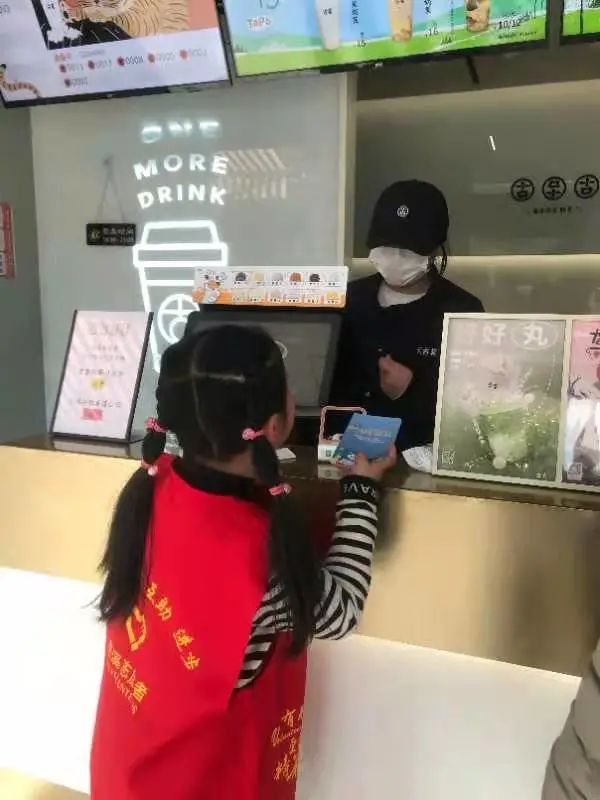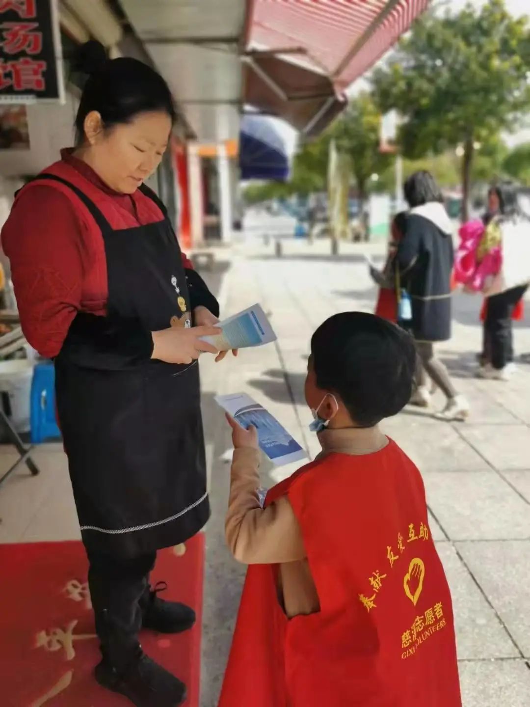 孩子们边有礼貌地说明自己的来意,边把宣传单递给对方。虽然话语稚嫩,但个个都落落大方,丝毫不怯场。不少同学还获得了路人的夸赞和鼓励。