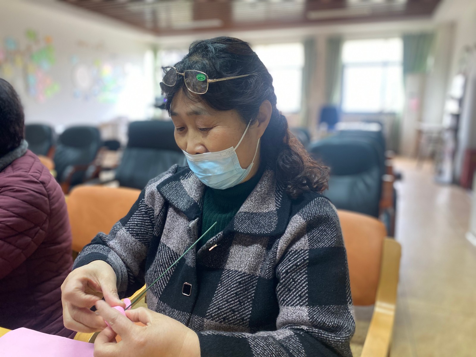 从花瓣的制作,再到最后花束的集合,居民们互相帮助,交流协作,共同完成了一束束美丽的手工花束。