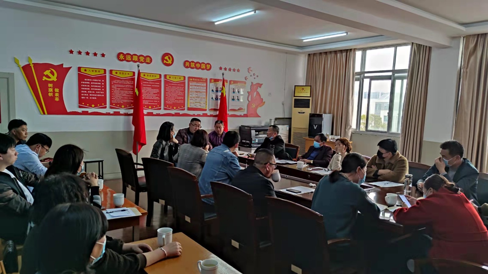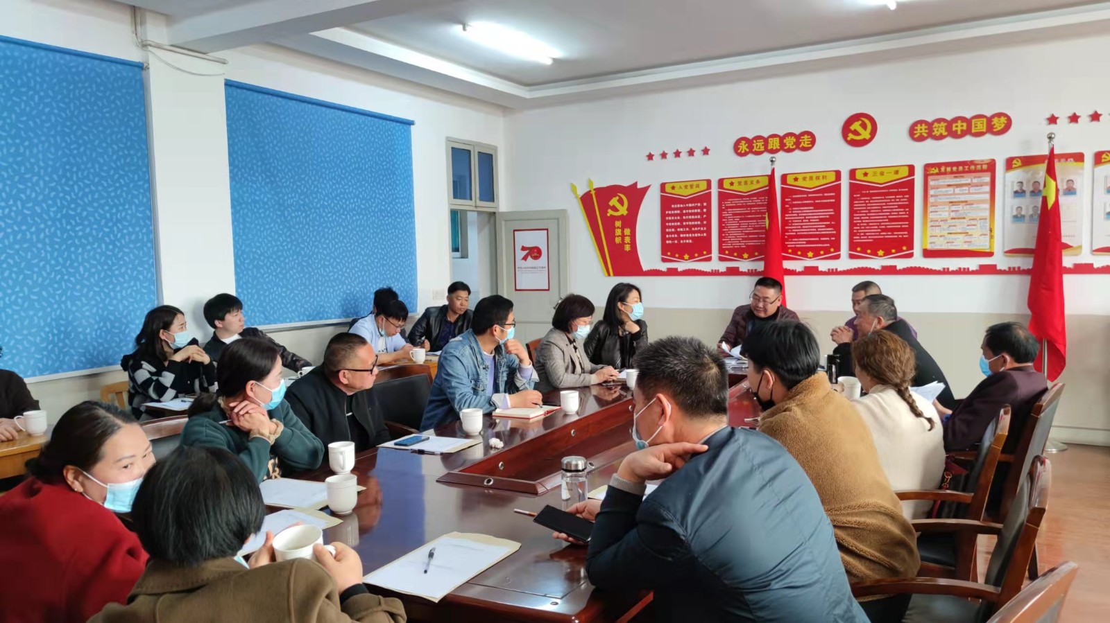 镇成校召开老年大学工作会议。首先,周校长对镇老年大学、教学点2021年度工作做总结,并感谢与会人员的付出。接着,周校提出要进一步办好老年大学,提升学校影响力的2022年度计划。然后,周校阐述了目前疫情防控工作形势、新冠防控的原则、如何进行应急处置以及防控工作督查的主要内容