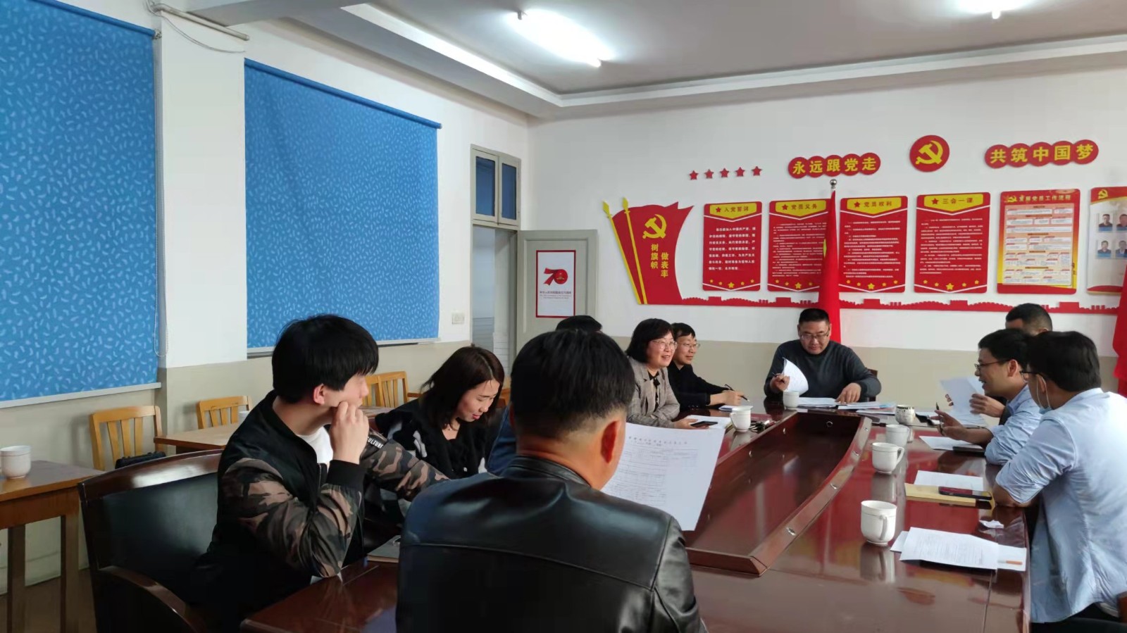 老年大学工作会议结束,老年大学骨干学员退场,其他人员继续参加小曹娥镇社区教育工作会议。周校长宣读《2022年小曹娥镇老年人智能技术日常应用普及行动方案(草案)》。希望村-校联动,社区-学校联动,多方协同,开展老年人智能技术培训,帮助老年人更好地适应并融入信息社会。社区预计组建专业师资团队和志愿者队伍,帮助老年成员学会基本出行、购物、就医等所需的应用,积极融入智慧社会。