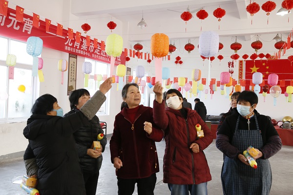 “以绢灯剪写诗词,时寓讥笑,及画人物,藏头隐语,及旧京诨语,戏弄行人。”猜灯谜、吃元宵是此次活动必不可少的节目,社区将精心准备的200多条谜语悬挂在红绳上,内容涵盖了蔬菜、水果、花草、树木、卡通等多种类别,既有通俗易懂的趣味猜题,也有较为复杂的抽象谜题,既具娱乐性,又具知识性。老人和孩子们争先恐后踊跃猜谜,认真琢磨,绞尽脑汁,你一言、我一语,互相提示和讨论,活动现场欢声笑语不断。社区工作人员还为大家煮出一碗碗热腾腾的汤圆,大家吃在嘴里,甜在心里,每个人的脸上都洋溢着喜悦的笑容。