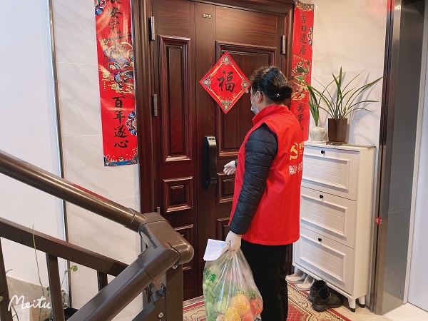 社区内的两个新建高档小区,目前已有120多户居民入住,为解决部分居民的燃眉之急,社区党群服务中心协调周边一切资源,最终和九峰山片区一起链接到“东尚市集”平台成功帮助居民采购到新鲜食材“居家隔离,却不能隔离爱,隔离温暖”,居家隔离和外出受限的居民只需一个电话或一条微信发出的“下单”信息,根据居民的需求,社区工作人员第一时间统计下单、领取并送“货”上门。九峰天宸小区的居民张大姐称,“没想到在疫情如此严峻,道路都封闭的情况下社区还能为我们想办法买到新鲜的蔬菜、水果,甚至还有肉,让我们没有一丝后顾之忧,也没有因生活必需品的采购而感到焦虑苦恼,真是太感谢社区工作人员的付出。”在为居民送菜的同时,社区工作人员更会耐心叮嘱居民:在特殊时期安心在家,尽量减少外出,社区会是居民朋友最坚强的后盾,做好居民的服务工作。