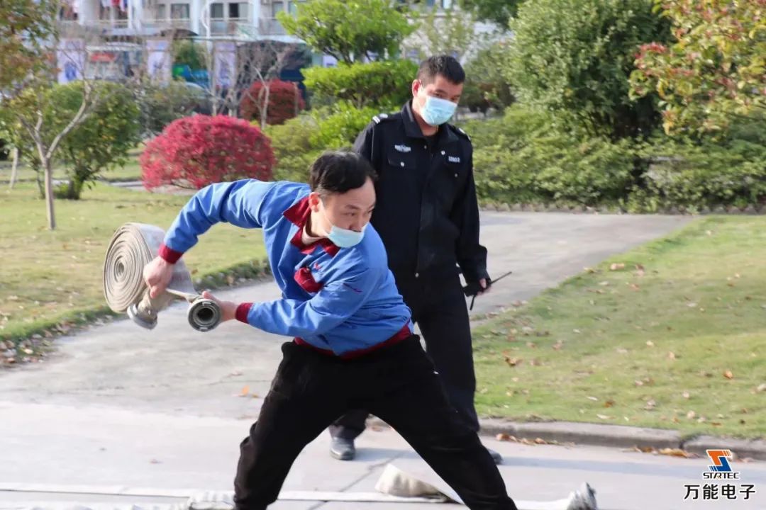 公司消防志愿队队长侯兴民为大家介绍了灭火器、消防水带、消防应急泵等消防器材的使用方法,一边讲解一边进行实操演示。