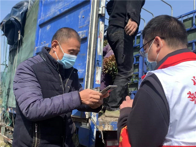 柴桥街道的村民大多以花木种植为生,田间经常可见装载苗木的外地牌照货车。对此,志愿者们深入田间地头,对货车司机进行扫码、测温,并询问是否为中高风险地区返仑人员。“我不想给国家添麻烦,出发前已经做过核酸了,下高速的时候也做过,你们放心吧。”来自南通的货车司机赵师傅一边说,一遍出示了核酸证明。