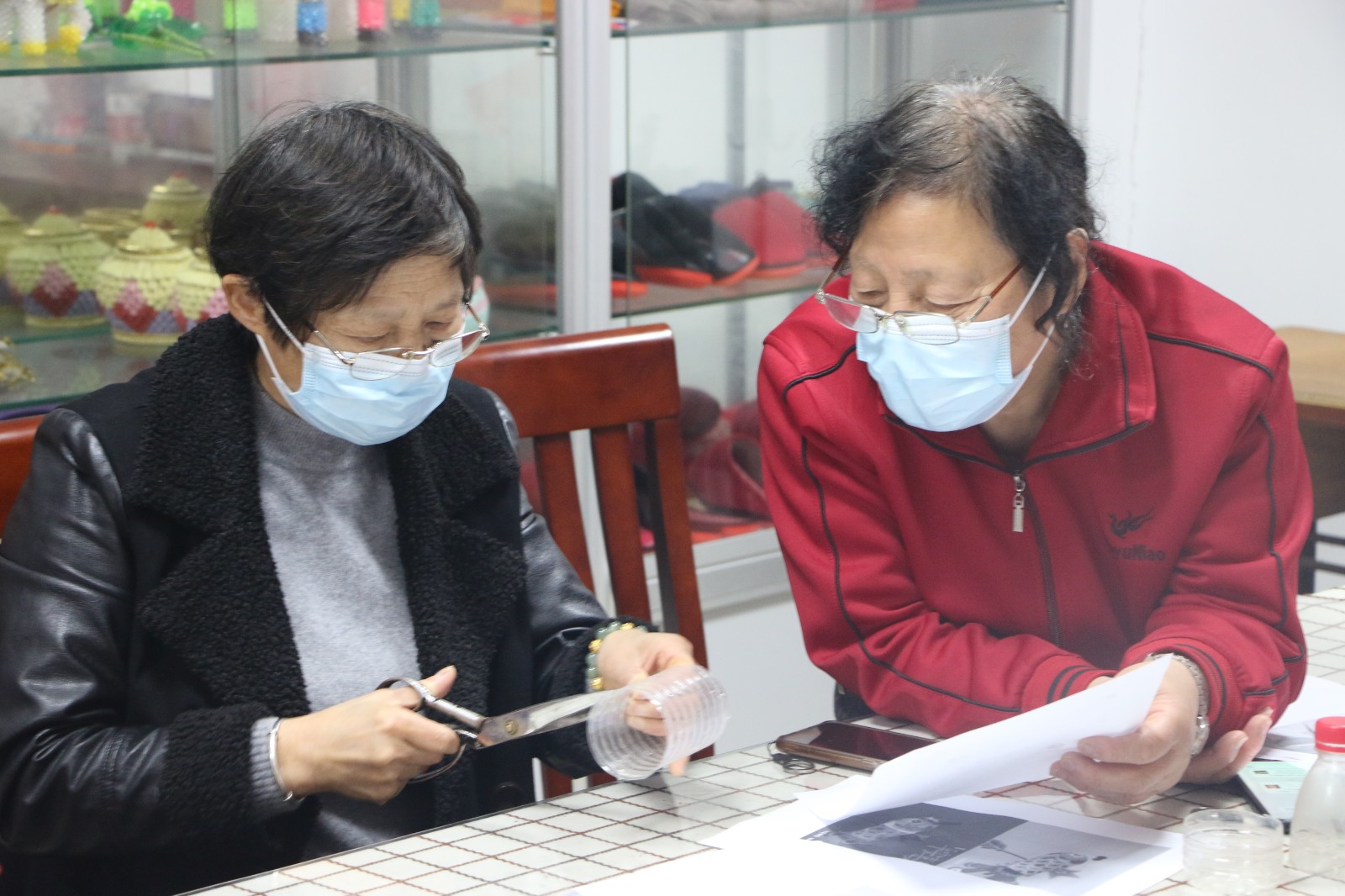 这次的手工活动是利用废旧的矿泉水瓶制作出精美的鱼灯。活动刚开始,社区工作人员先给阿姨们分发了鱼灯的制作图纸和提前准备的矿泉水瓶,并详细讲解了鱼灯的制作方法。阿姨们拿着矿泉水瓶对照着图纸仔细地进行了比划,并在瓶子上描画出了需要的裁剪线,然后拿起剪刀小心地剪了起来,不一会儿,鱼头、鱼身、鱼尾的模型就展现在了大家眼前。“小俞,阿姨把纸巾先粘上去哦,一会你帮阿姨把鱼画出来,哈哈哈。”“好嘞好嘞,阿姨,这个我在行,我来。”只见社工俞巧燕拿起粘好纸巾的鱼模型细心地开始了描绘,圆圆的大眼睛,五彩的鱼鳞,生动的鱼尾,一条五彩缤纷的五彩鱼很快就出现在了大家眼前。“哈哈,不错嘛,这个鱼画的还挺好看的。”看着手上合力完成的作品,大家脸上都露出了开心的笑容。