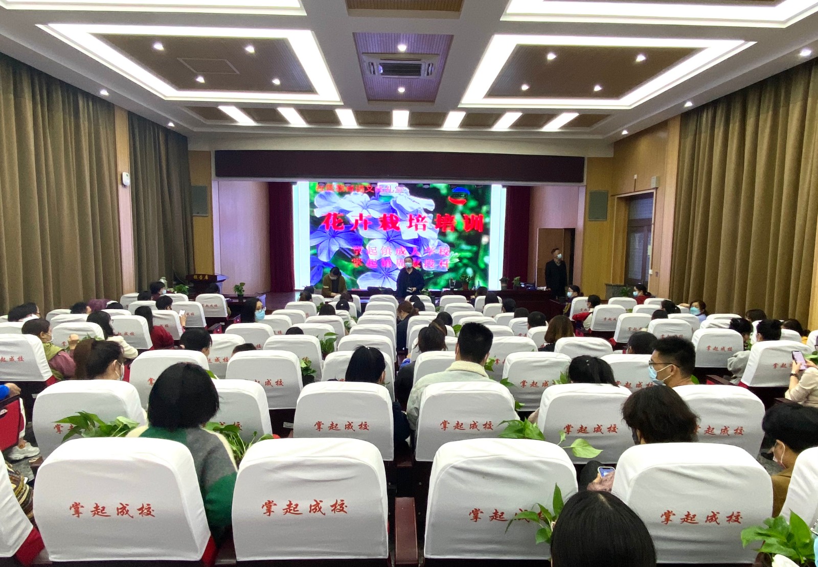 花卉不仅可以用来欣赏,而且还能起到净化生活空间的作用。花卉在人际交往中已逐步成为传递友情、表达心愿的媒介,人们常把它作为幸福美好、吉祥和友谊的象征。随着经济的发展,对花卉的需求量正在迅猛增长,因此,对花卉栽培技术的普及就更显重要。420晚,由掌起成人学校主办的花卉栽培技术培训班正式开班了,学校校长杨建立做了开课发言。本次培训特别邀请了中国花卉协会讲师李建辉老师授课。