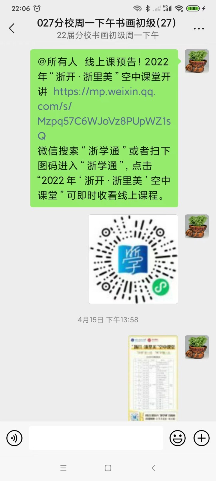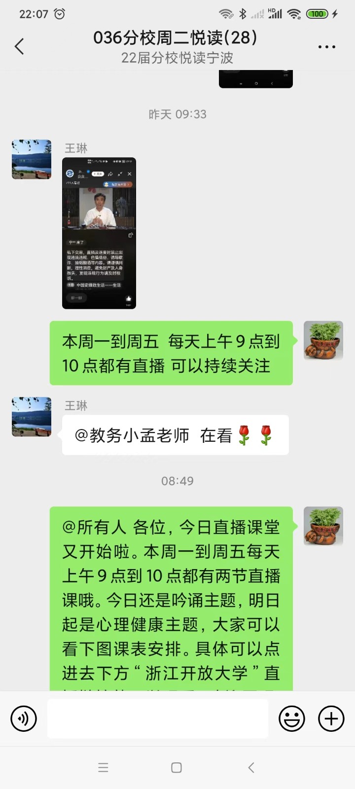 疫情期间,我们努力做到停课不停学,停课不停工。我们在大力推广省中心推出的“浙开·浙里美”空中课堂线上课程基础上,还积极鼓励老师们利用这个空档期优化课程,学习拍摄教学视频,并在班级群和学员积极互动。同时,鼓励班内学员互助互学,营造良好的学习氛围,从同伴身上触发学习动力。