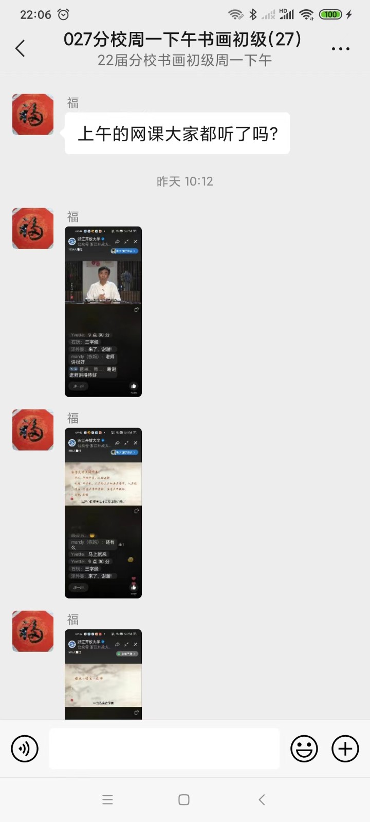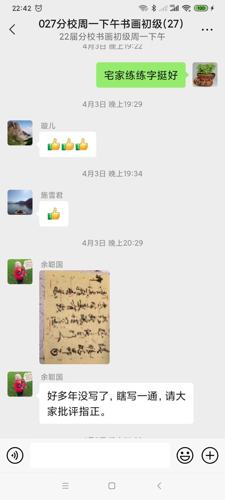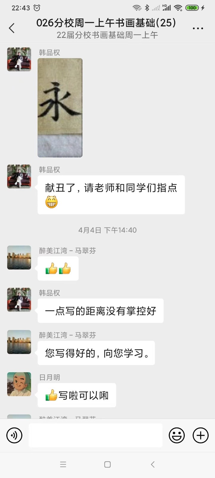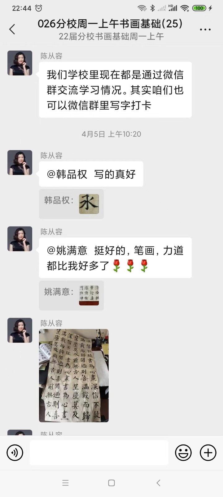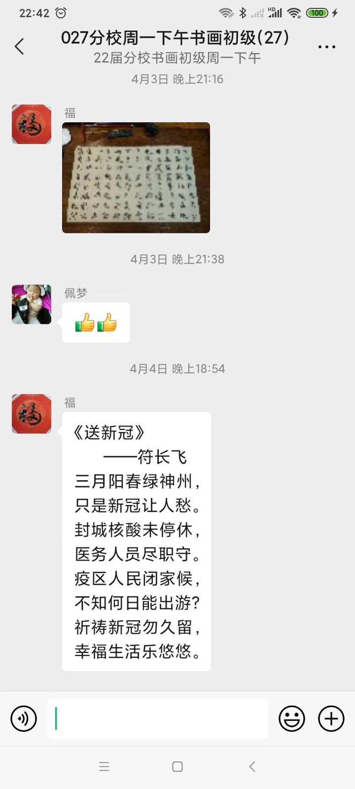 书画班里的同学们也积极在班级群内互动,宅家练笔,写诗作画,以艺战“疫”,分享美传递美,互动点赞走起。我们的班级就像一个社会的缩影,大家积极配合防疫政策,减少出门,积极参加全员核酸,做好家里的后勤保障……在疫情之下,大家仍然心怀感恩,心态乐观,期待疫情早日结束。