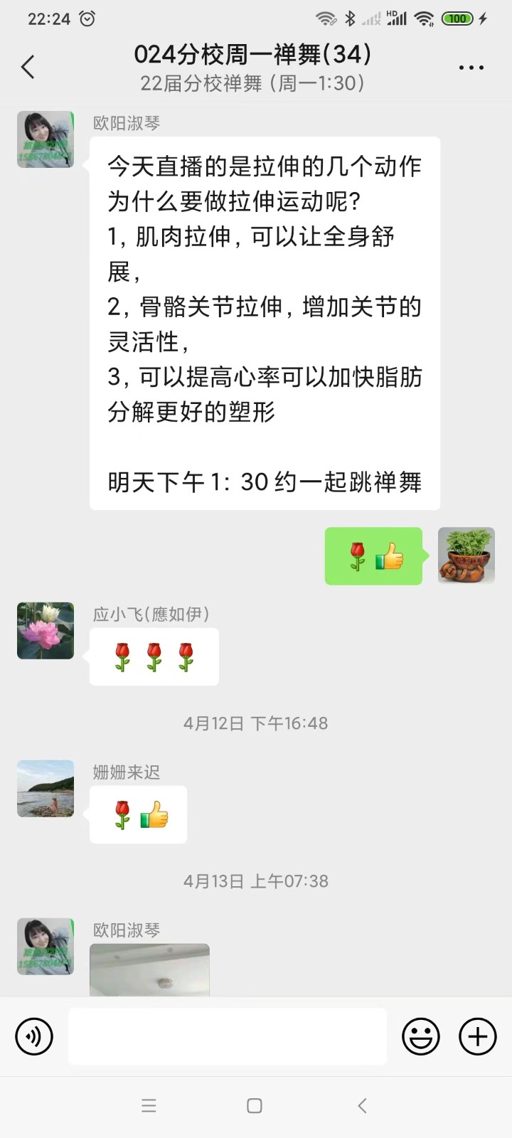 这是停课之前李老师带大家在广场练习的视频。下图是李老师做志愿者,以及发布朋友圈的截图。