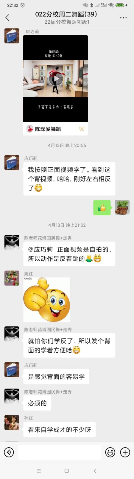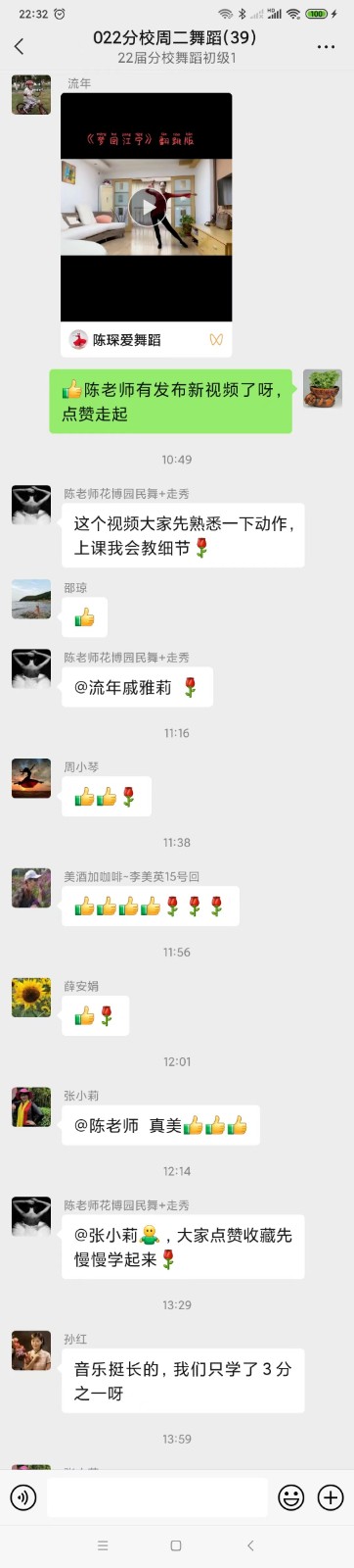 中国舞班的陈老师以舞抗疫,宅家利用有限的空间,给大家录制舞蹈“微课堂”并在班级群指导教学,贴心地给大家准备了正面+反面两个版本,方便学员在家自学练舞!学员们都说,再次看到老师美美的舞蹈,宅家郁闷的心情早已烟消云散了。