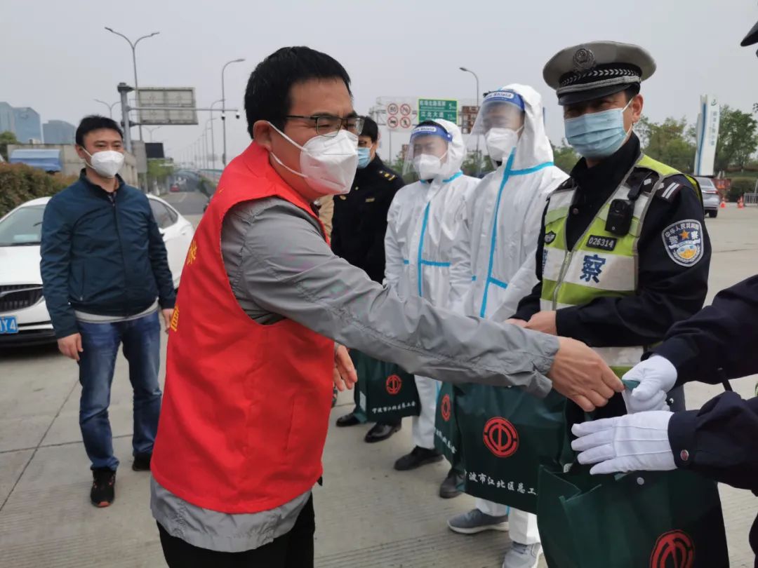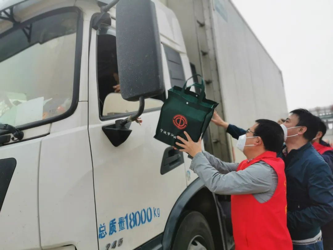 “你好,这是前江总工会送给你们的一片心意,请收下!”4月18日下午,宁波北高速卡口附近,前江街道总工会负责人带队向来自外市的货车司机们以及交警、综合行政执法中队、街道城建办等防疫执勤人员送上了诚挚的问候。