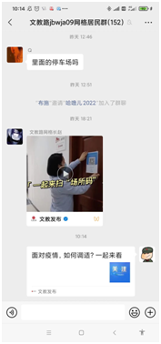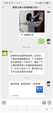 永红社区为更好地缓解外面环境对居民带来的焦虑和恐惧情绪,调适恐惧也在这些不当行为中迅速蔓延开来,造成人群的恐慌。所以积极在居民群时推送更种,疫情当下,应该做的规范动作, 以及心里上如何进行调适。