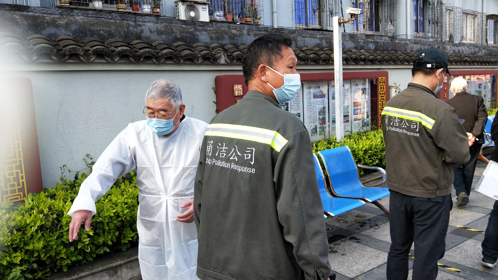 “小伙子,你往后退一点,保持一米线的安全距离,不要着急,先把码都准备好。”4月21日在红联社区核酸检测现场,已经73岁的“银辉”党员谢祖桥正维护着核酸现场的秩序,保障着核酸检测的顺利进行。