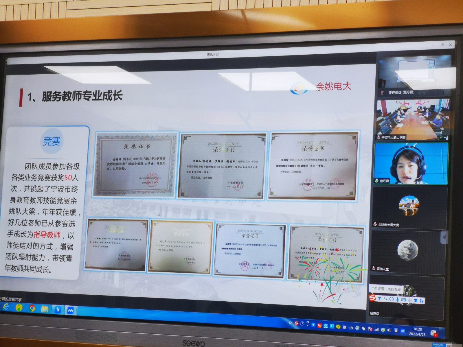 2022年宁波市成教研究课题立项申报已拉开序幕,为全面提升成教教师的科研素养与能力,提高申报项目质量,4月25日上午,宁波职成教学院举办了宁波市成教研究课题申报专题培训。根据疫情防控要求,本次培训通过“腾讯会议”系统以线上讲座形式举行。培训涵盖两个内容:一是《成教研究课题申报书撰写的要素与方法》专题辅导,二是市成教优秀科研团队课题研究经验分享。培训会由宁波市职成教学院胡家臣老师主持。余姚电大(社区学院)“精一”团队全体成员参加了此次培训并作了经验分享。