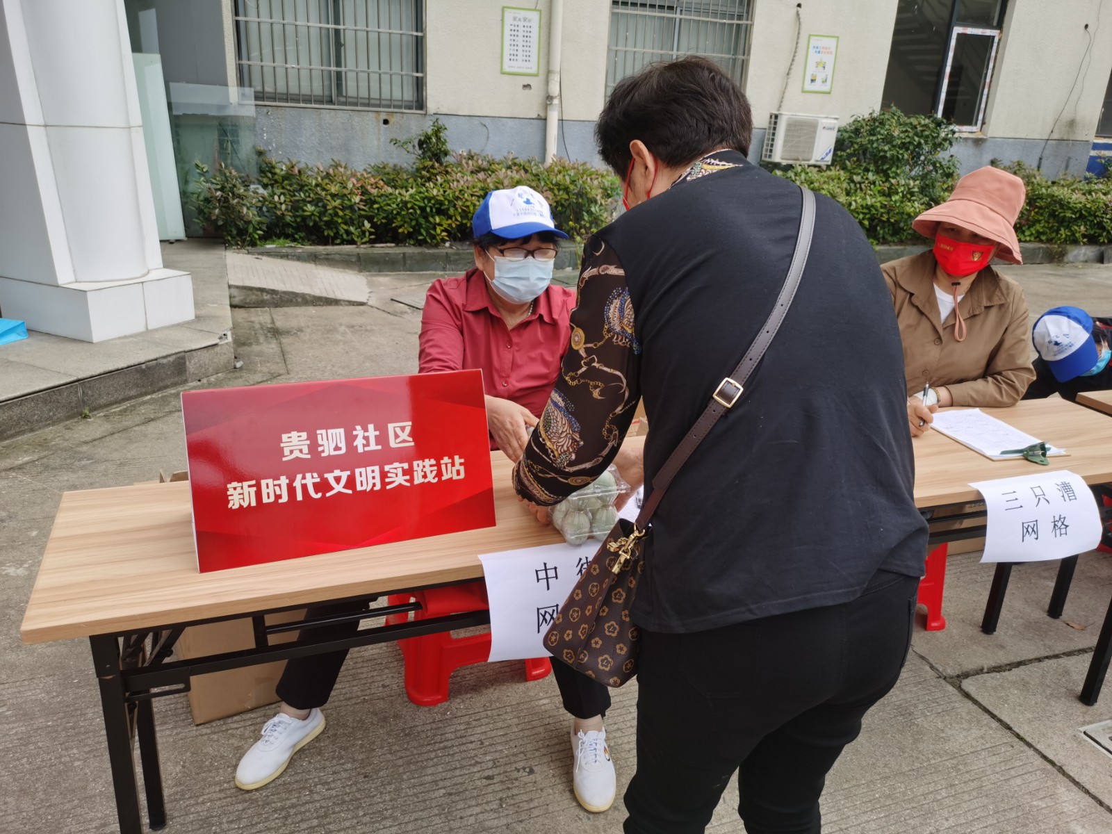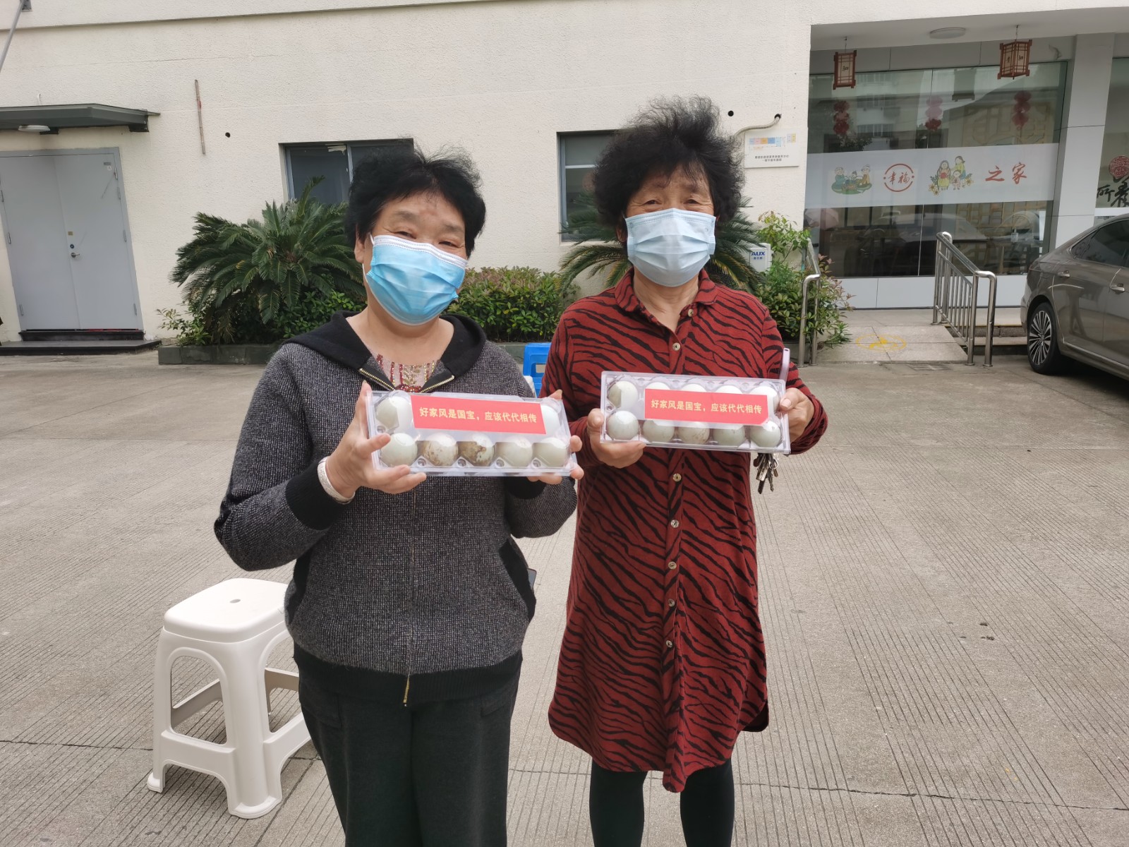 活动开始前,贵驷社区工作人员细心地在立夏蛋包装盒上贴上一张张红色标语,将文明家风家训的理念贯穿到本次活动始终。之后,因疫情防控需要,社区组织居民小组长、志愿者等人员布置场地、测量体温、维持秩序,并提醒每位过来的居民佩戴口罩,保持一米间距。居民们捧着象征着社区祝福的立夏节蛋,都展露了开心的笑容。