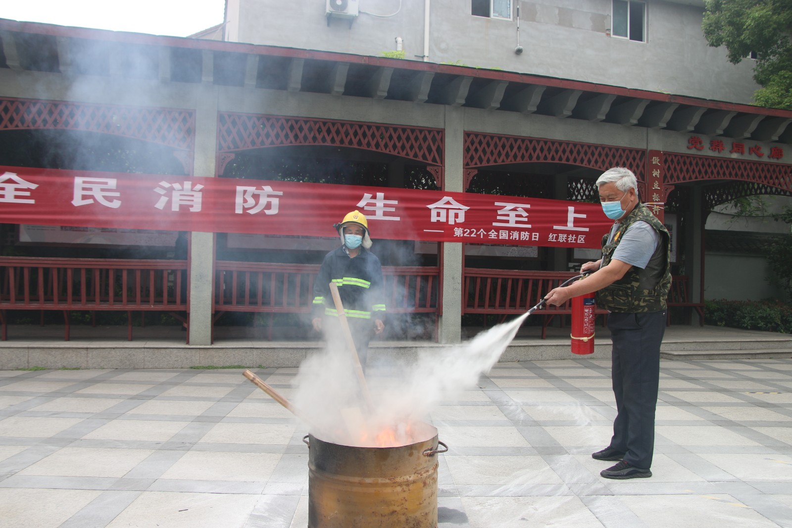 红联社区:退役军人消防演练 守护居民健康安全