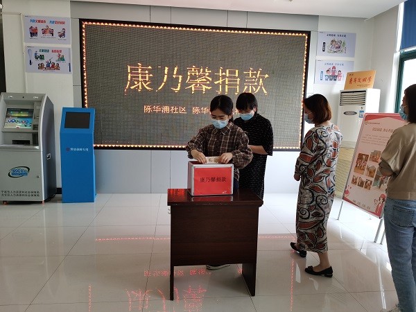 活动现场,各人员按照顺序一一将爱心投入到捐款箱内,10元、20元、50元....一份份捐款虽然金额较小但承载着每一个爱心人士的关爱。接下来,陈华浦社区将动员社区居民积极捐款,并向居民宣传关爱患恶性疾病的贫困妇女,传播正能量。