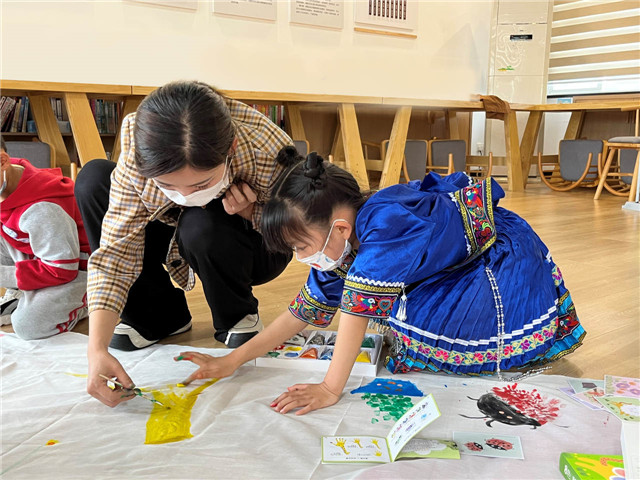 “妈妈,我们用红色和绿色画一棵树好吗?”来自苗族的孙筱媛兴奋地和妈妈讨论着。各组亲子家庭将一起完成一幅手指画,手指画就是要充分的发挥利用小手,不仅仅是手掌,还可以用紧握的拳手形成的拳头印,或手指印,在场的所有人都沉浸在家所赋予的美好中。通过亲子家庭的合理创作,便形成了一幅幅独一无二的创意手指画,手指画的创作过程激发了孩子们的想象力,加上有爸爸妈妈的参与,孩子们的幸福感更是油然而生。“孩子很重视这次活动,要求穿上我们土家族的民族服装来参加。感谢社区组织的这次国际家庭日活动,平时我们陪伴孩子的时间并不多,很高兴这次能有机会和其他民族的亲子家庭一起玩。”来自土家族的家长陈小燕说道。
